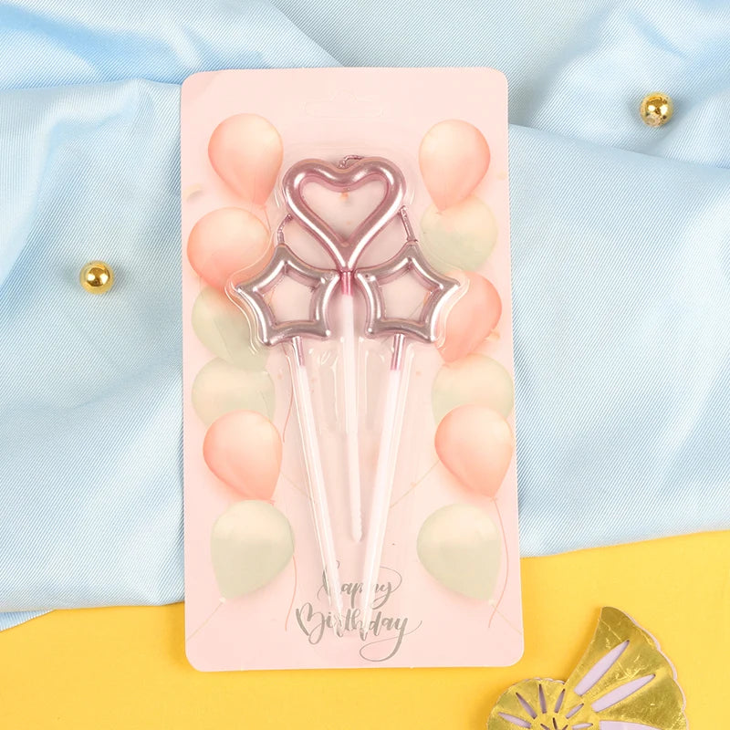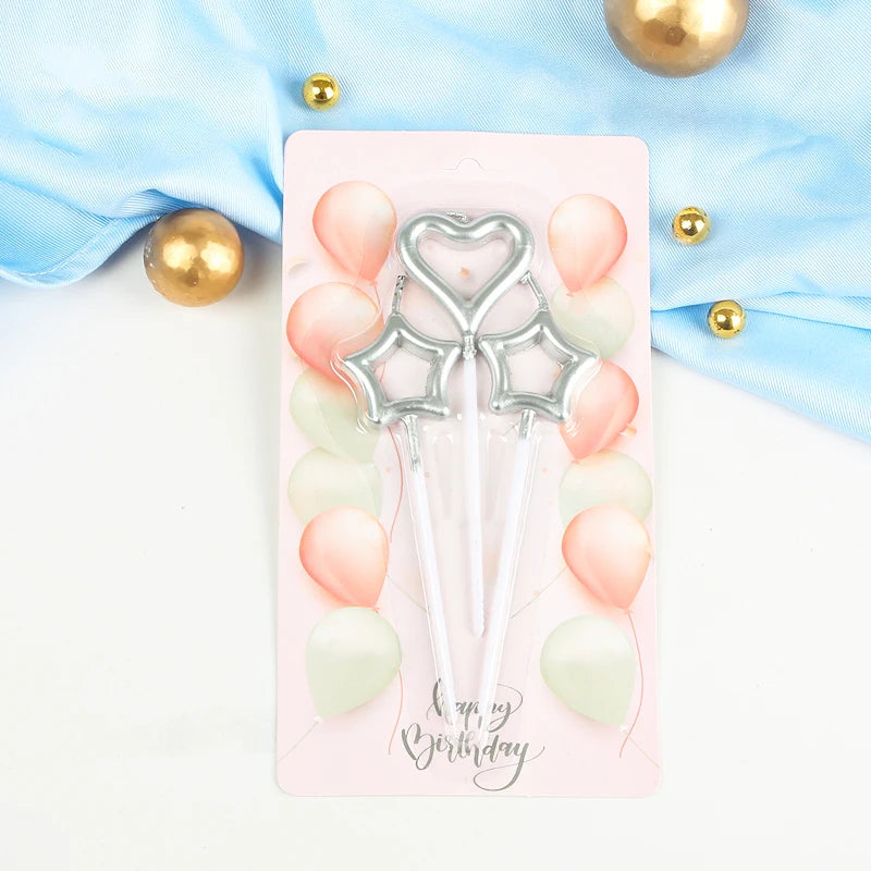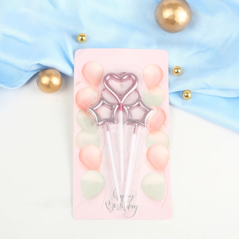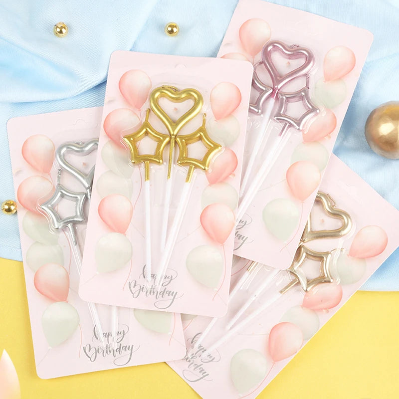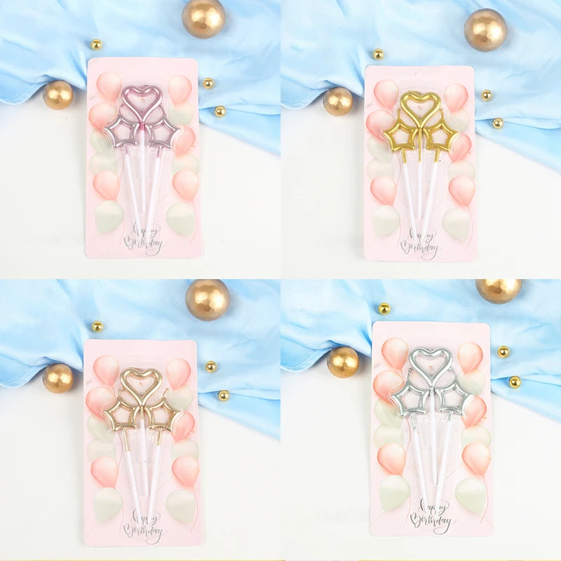 Star Heart Birthday Sparkler Candle Romantic Cake Decoration Birthday Cake Topper For Party Wedding Valentines Day Supplies Tool