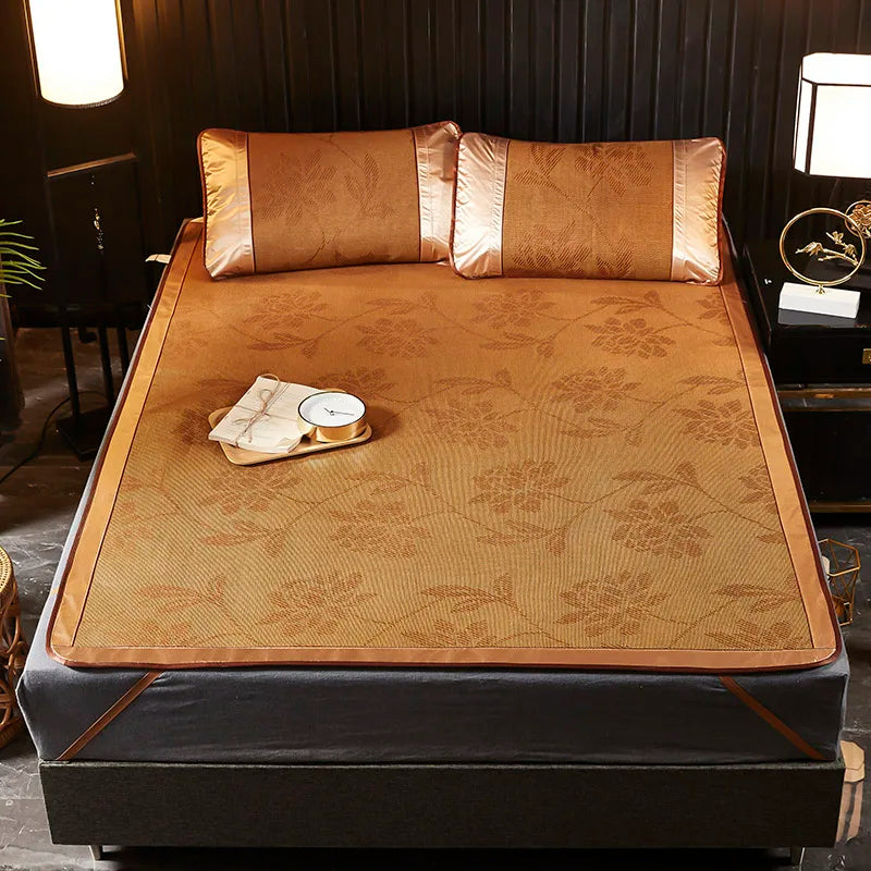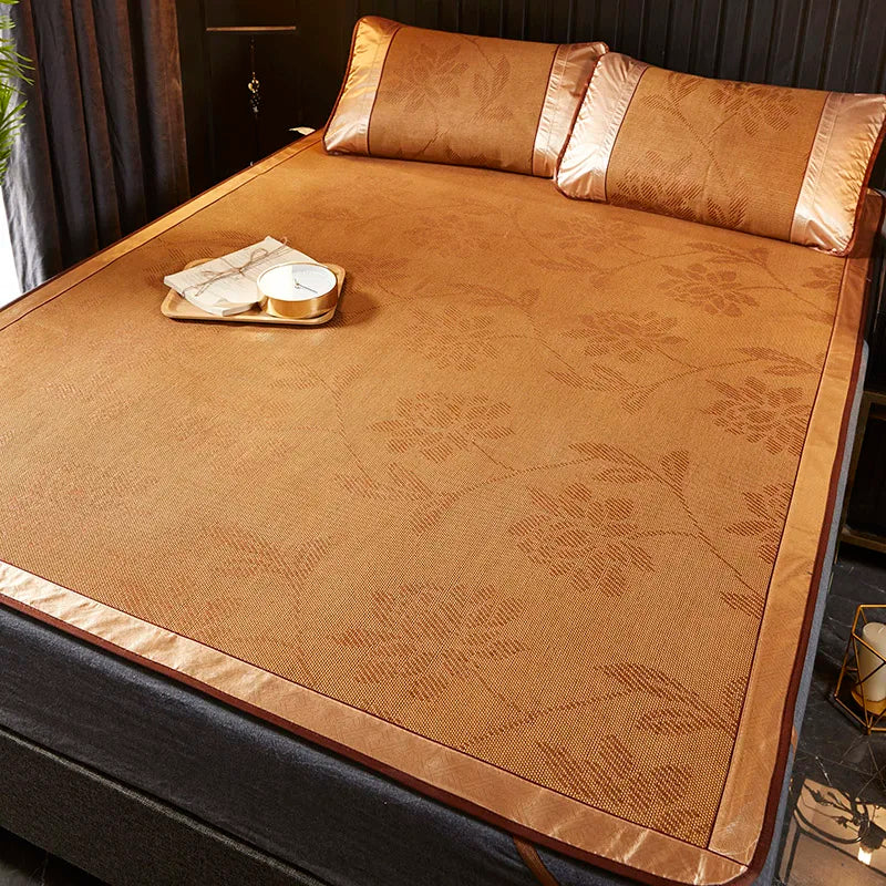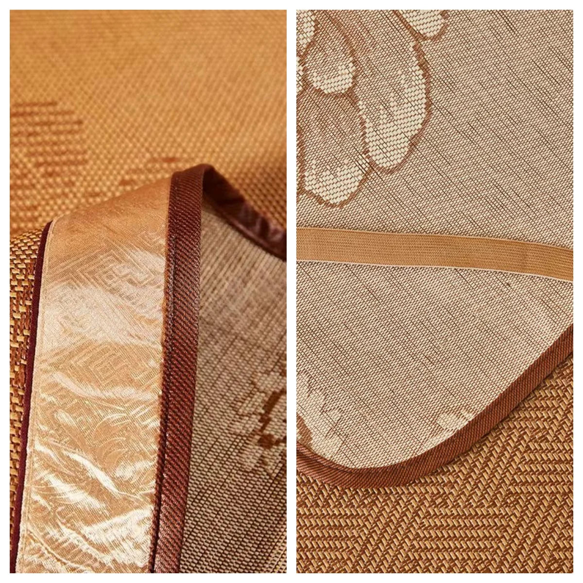 Summer Sleeping Mat Kit Random Color Cool Rattan Mattress Cover,Jacquard Cold Fitted Sheet Set,AB Side Straw 2/3pcs With Band