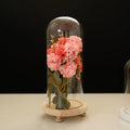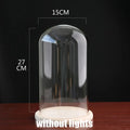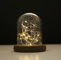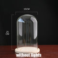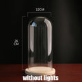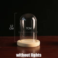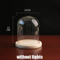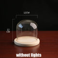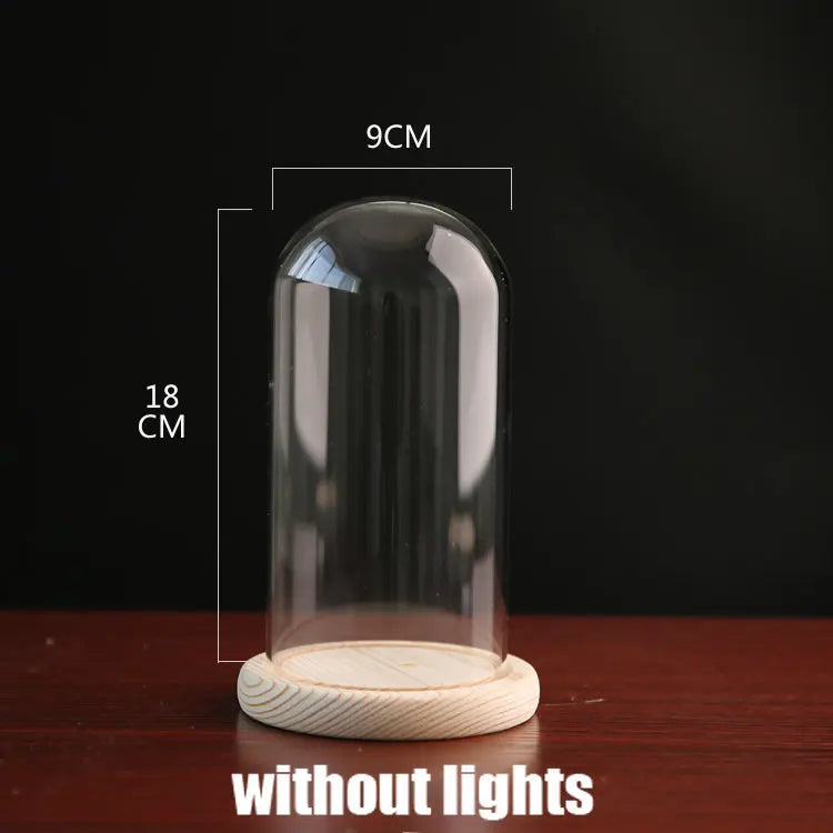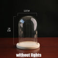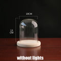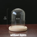 Tabletop Display Glass Cover Terrarium Container Decor Dry Flower Ornaments Craft Bell Jar Wood Base with Feet LED Light Holder