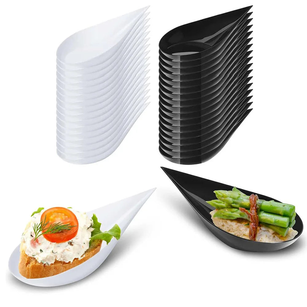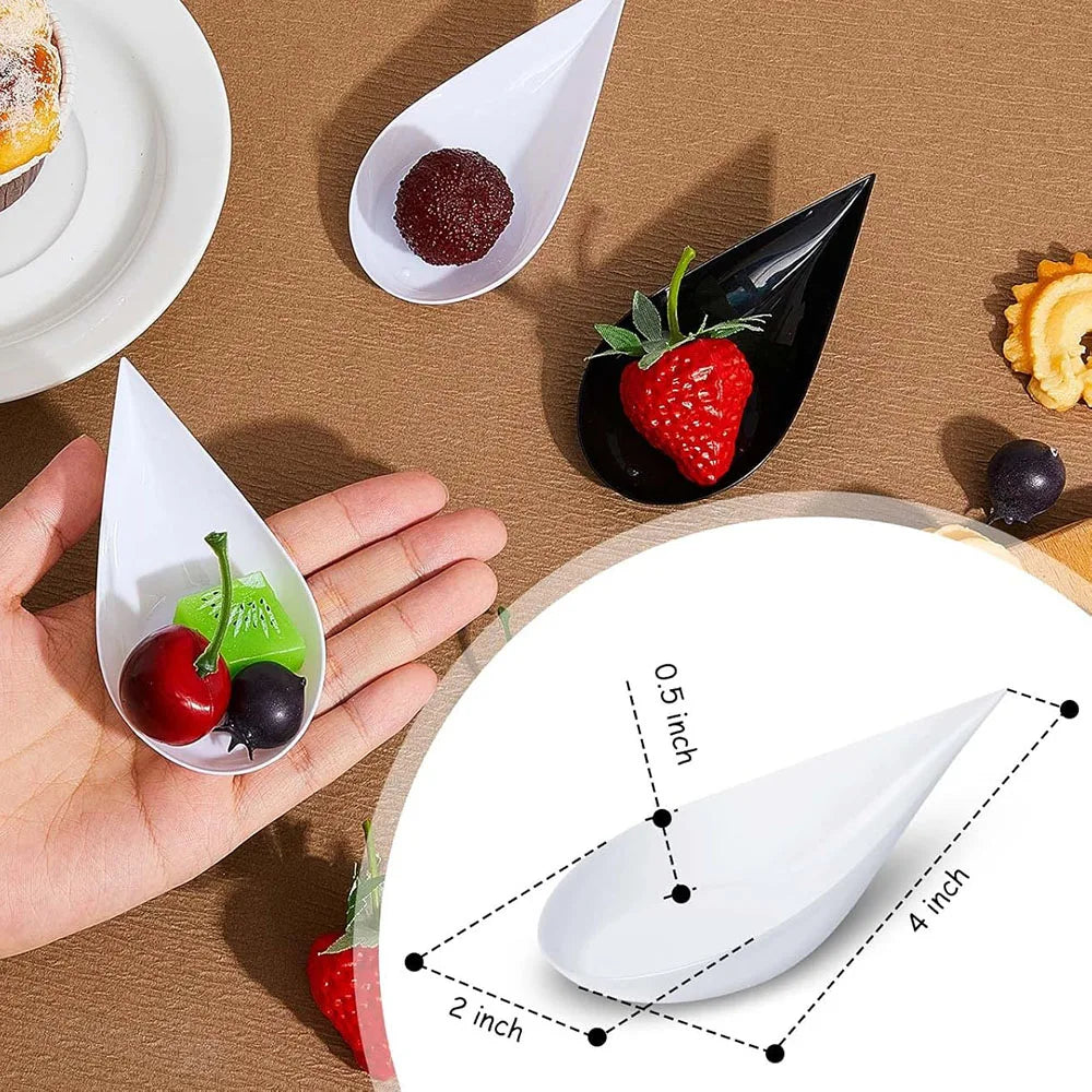 Tear Drop Mini Appetizer Plates,Reusable Plastic Spoons Desserts Appetizers Dishes Serving Plate,Catering Dessert Tasting Cups