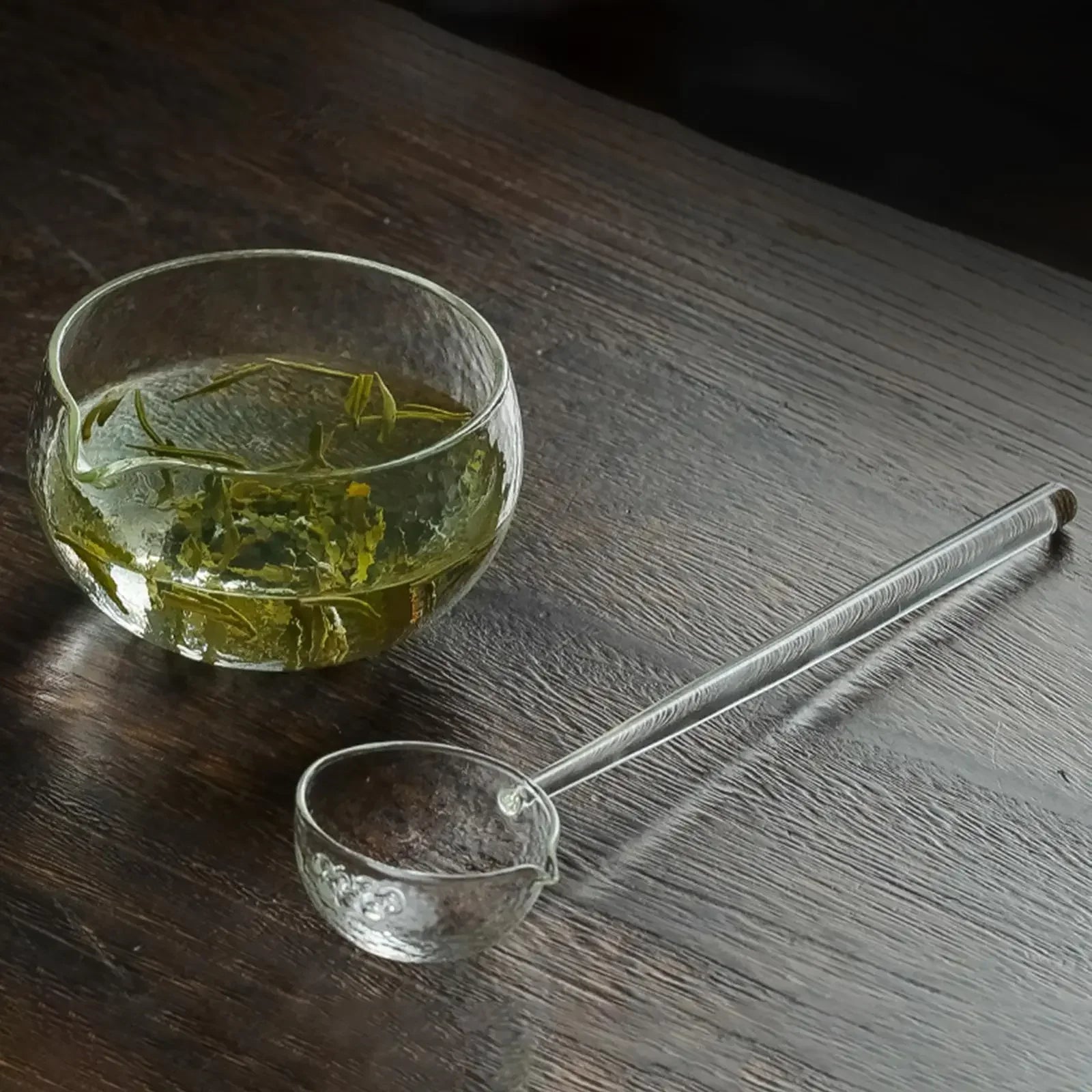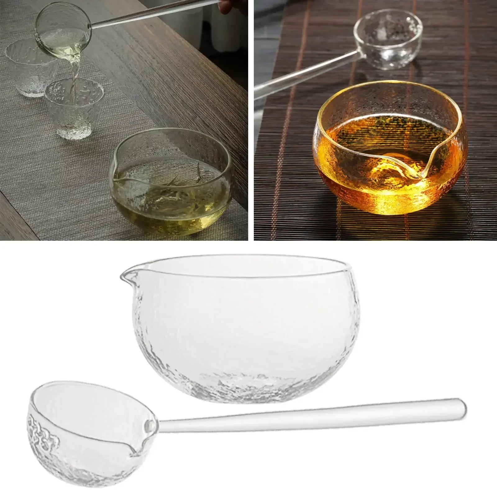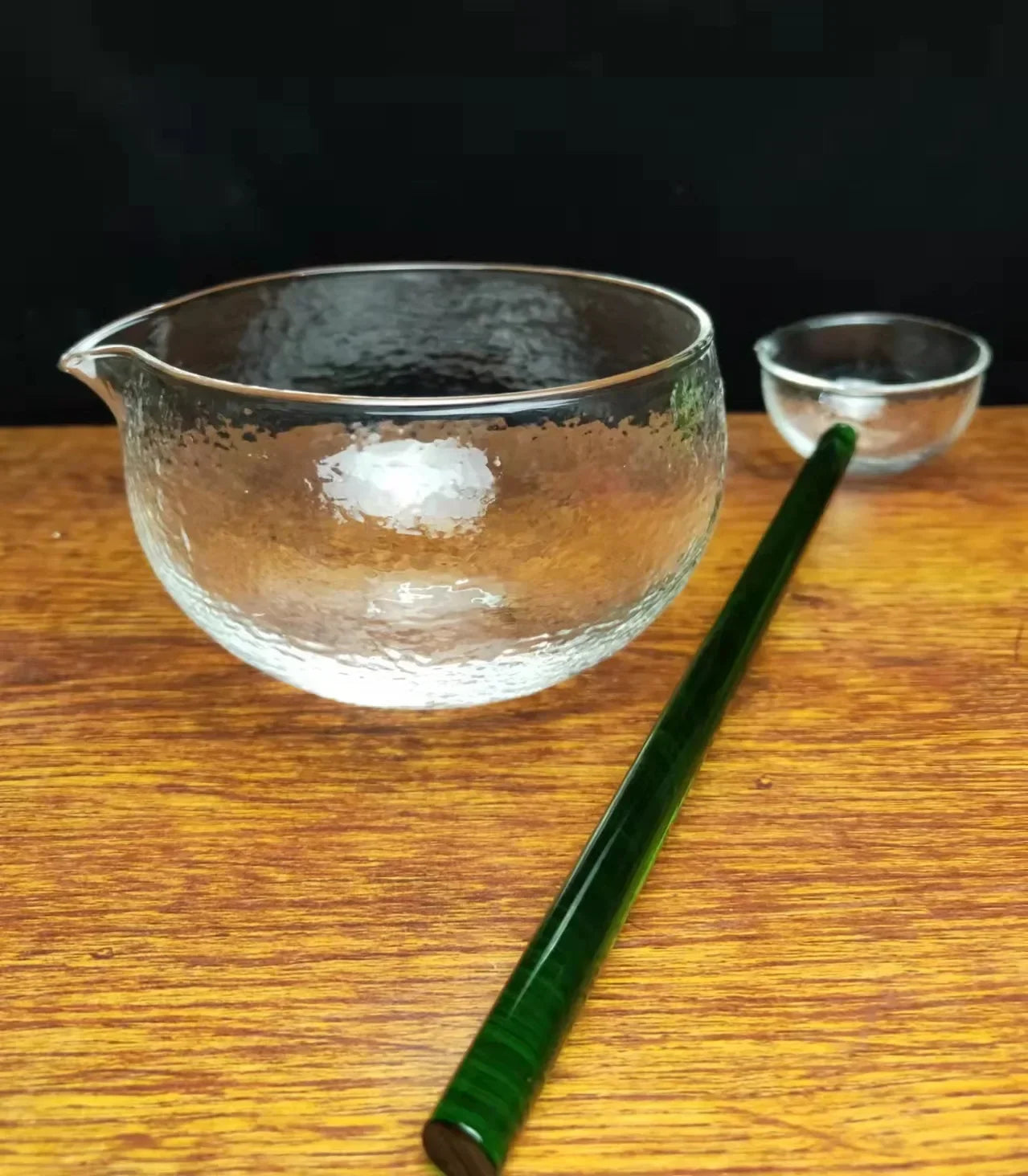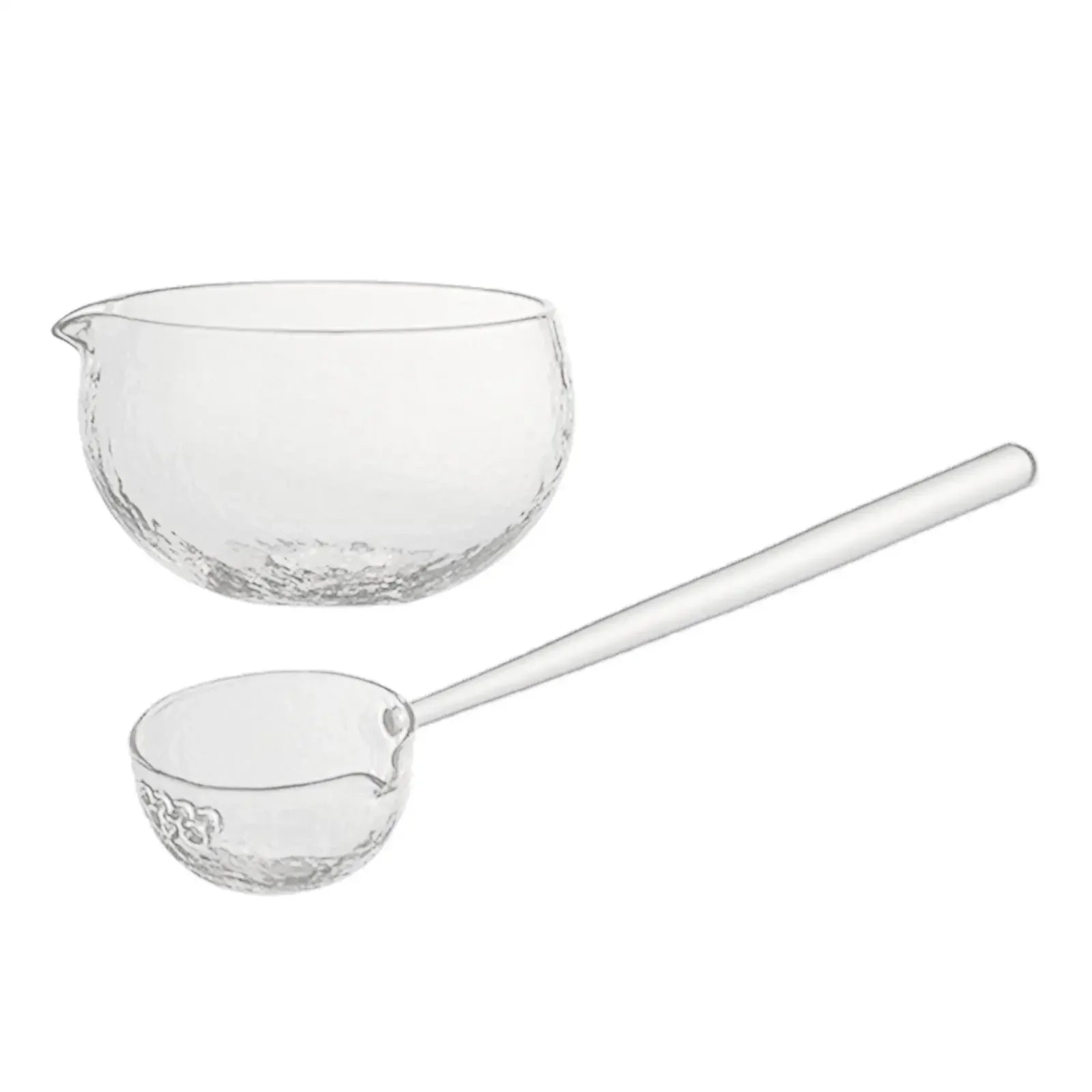 Textured Glass Matcha Bowl and spoon with Pouring Spout green Tea Japanese Style Matcha Kit Matcha Glass Bowl for Party