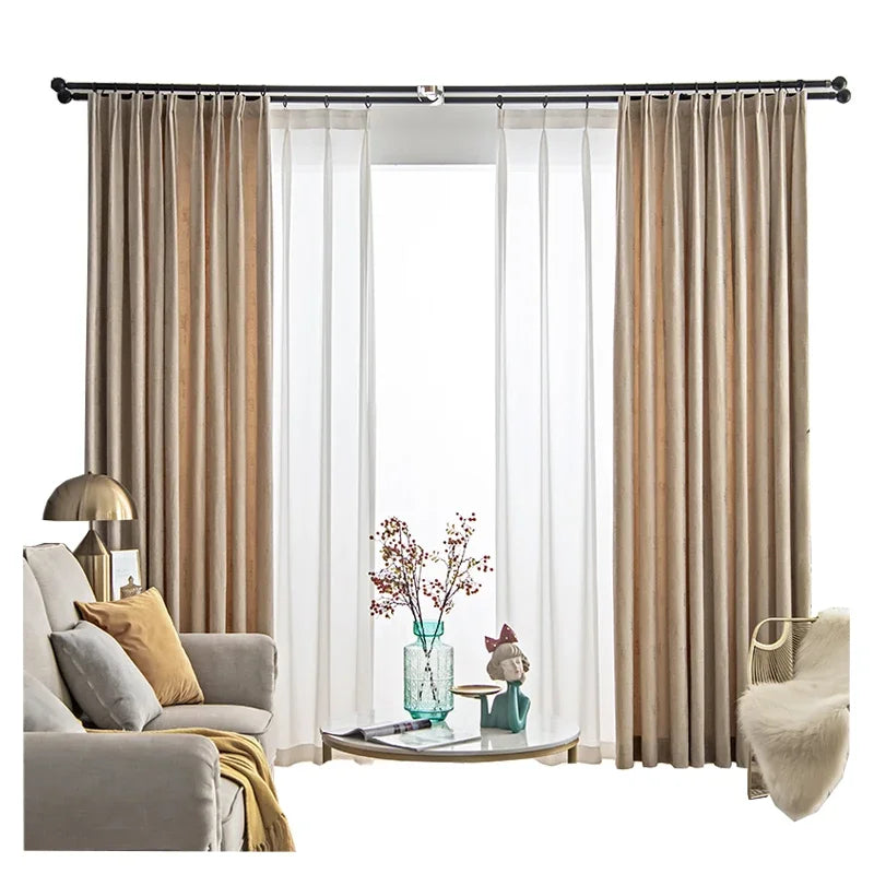The New Simple Curtains for Living Dining Room Bedroom and Modern Beige Bronzing Flannel Thickened Shading Velvet Light Luxury