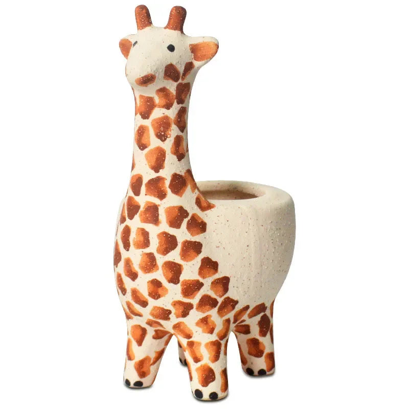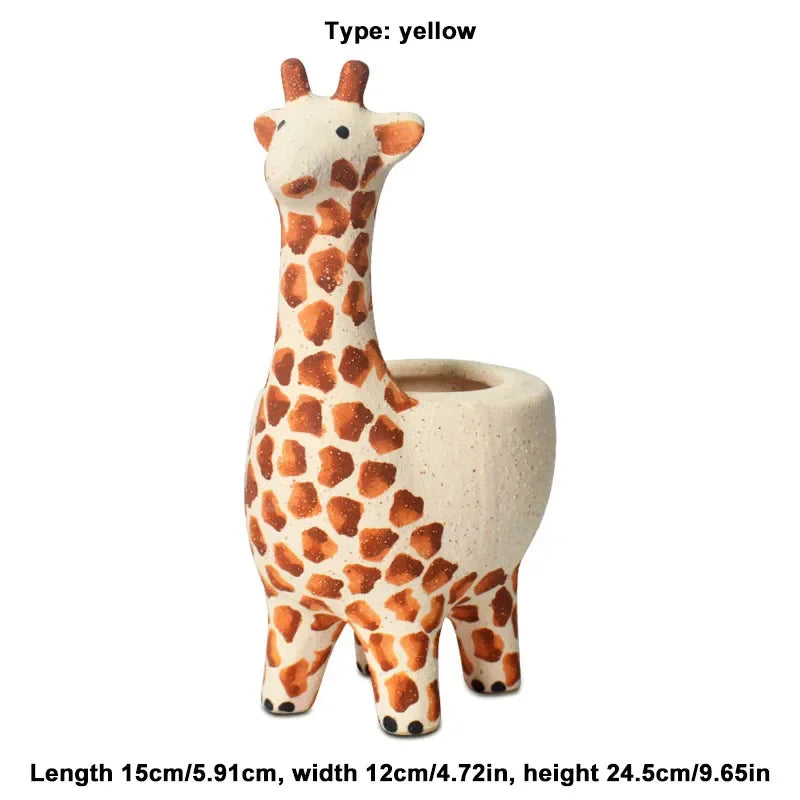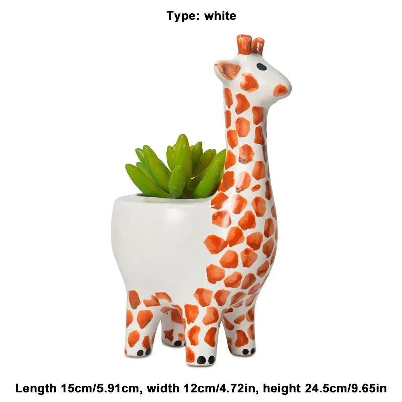 Tingle-Cartoon giraffe Ceramic Flower Pot, Modern Home Balcony Garden Decoration, Animal Ornament, Succulent Plant Pot
