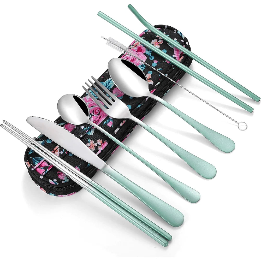 Reusable Travel Cutlery Set with Case – Portable Stainless Steel Utensils for Lunch, Camping, School & Office | NaturalBuiltHome