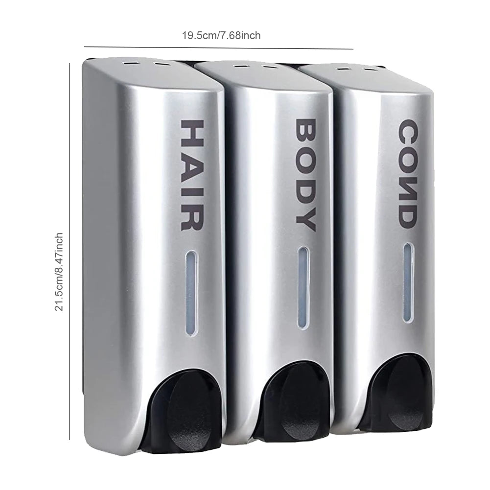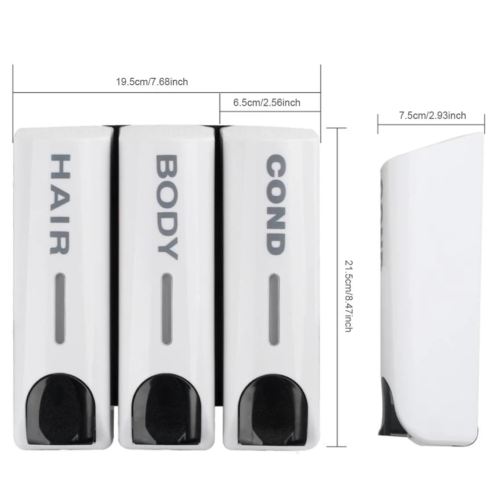 Triple 350ml Shower Bath Shampoo Dispenser Heat-Resistant Wall-Mount Shampoo and Conditioner Dispenser for Bathroom Accessories