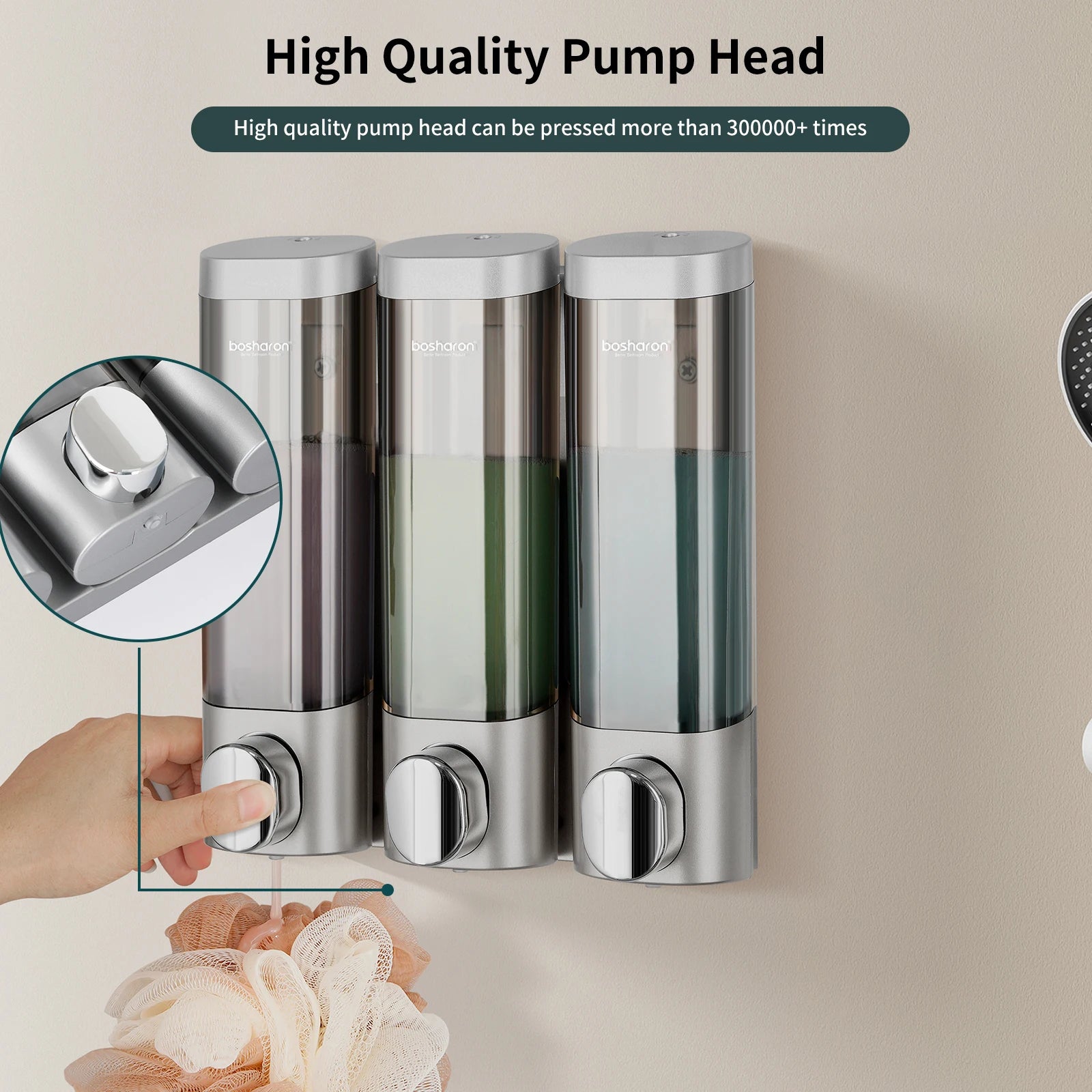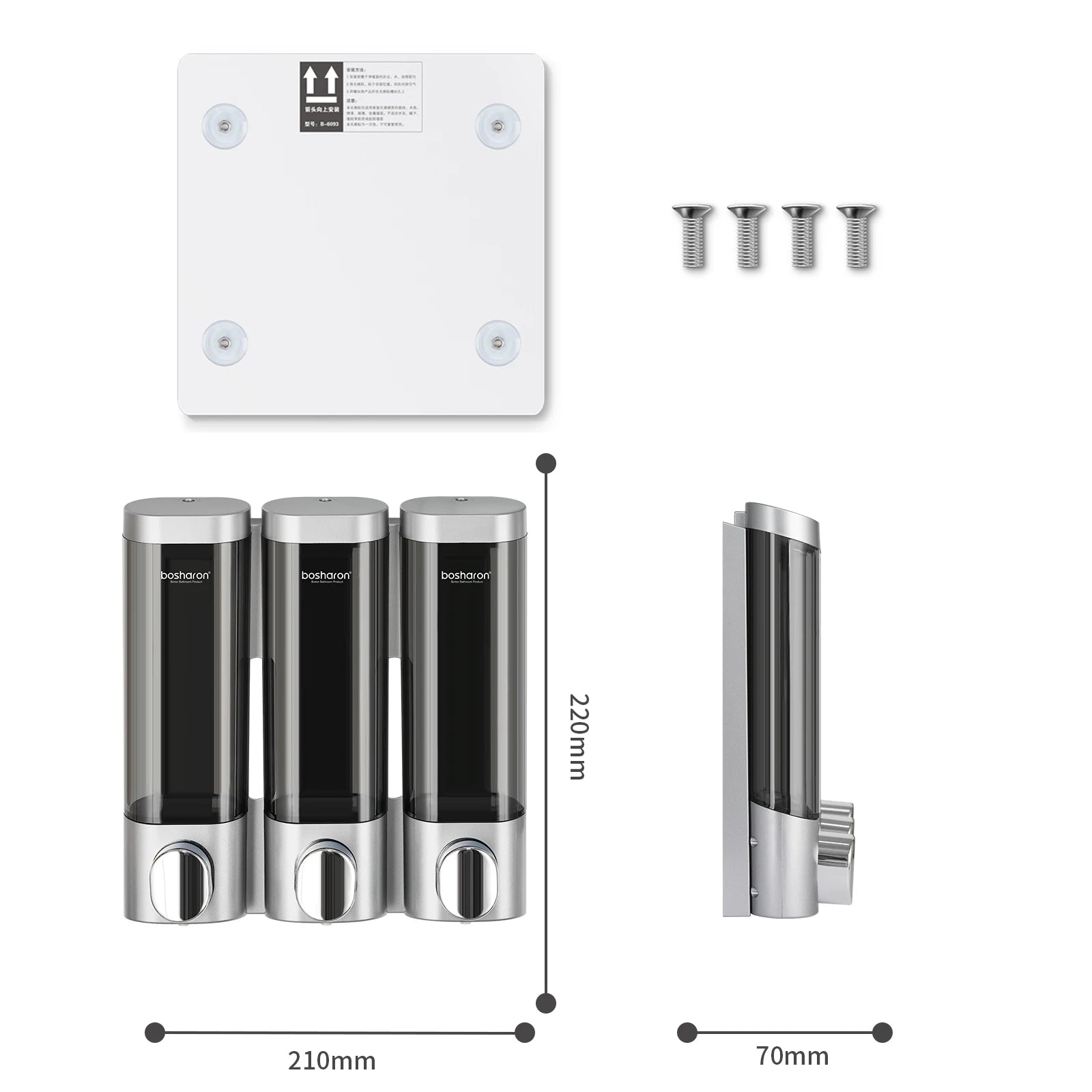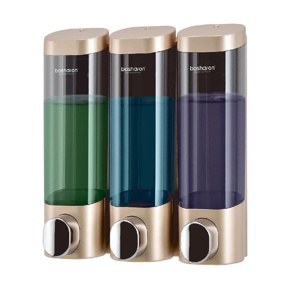 Triple Liquid Soap Dispensers Shower Gel 300ml*3 Chamber Wall Mount Gel Lotion Bathroom hotel plastic Manual shampoo dispenser