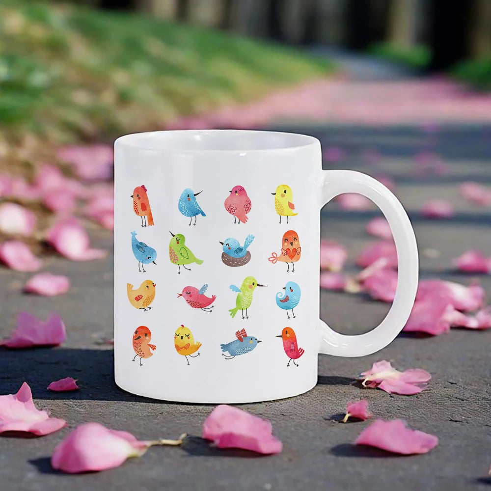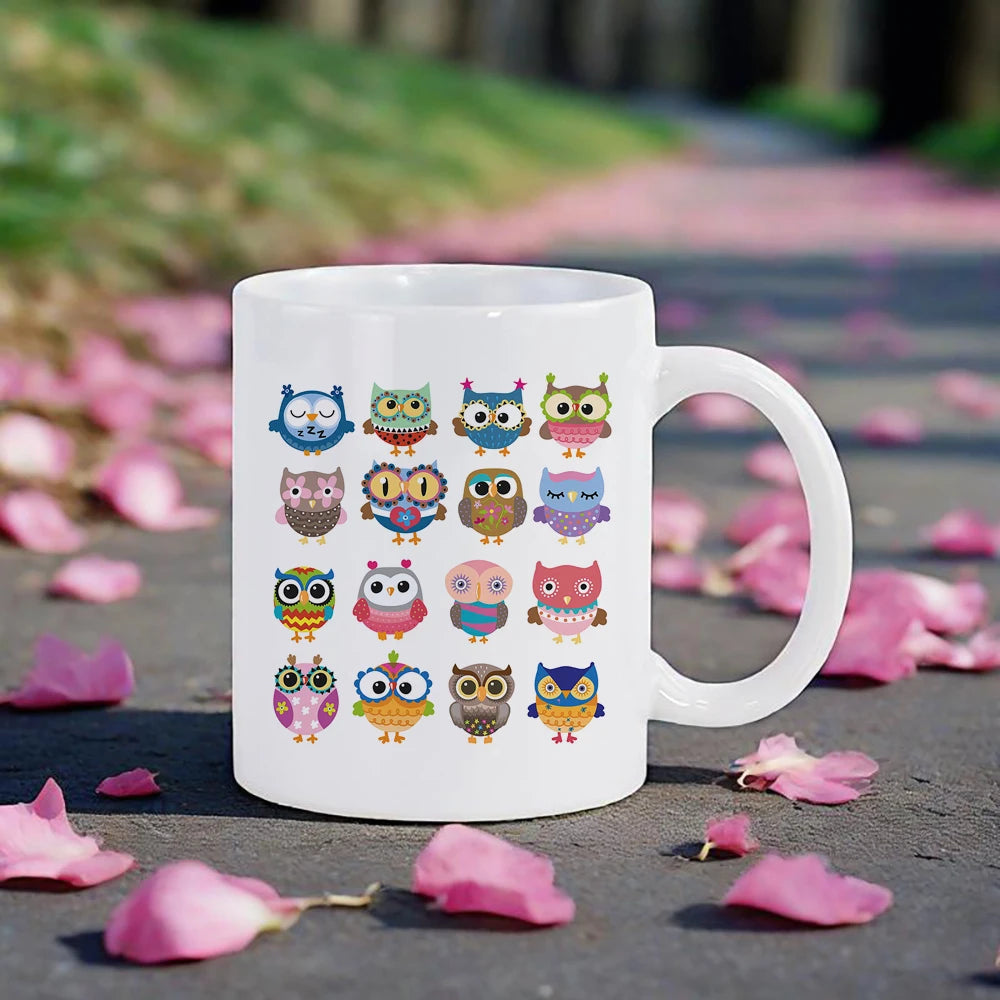 Various Birds Pattern Beer Mug Owl Themed Coffee Mugs Drinkware for Milk Juice Soup Cute Gift for Classmate Coworker Ceramic Cup