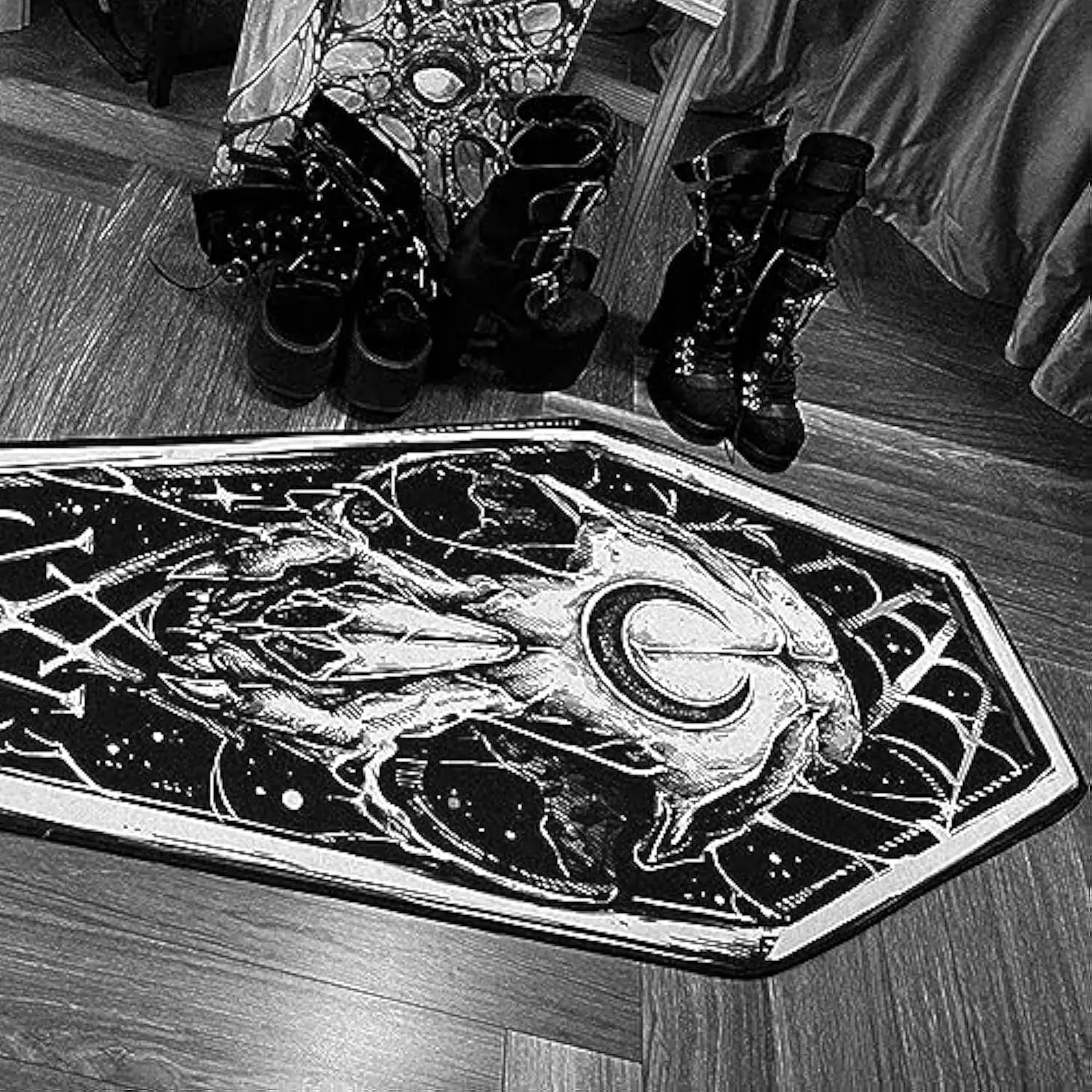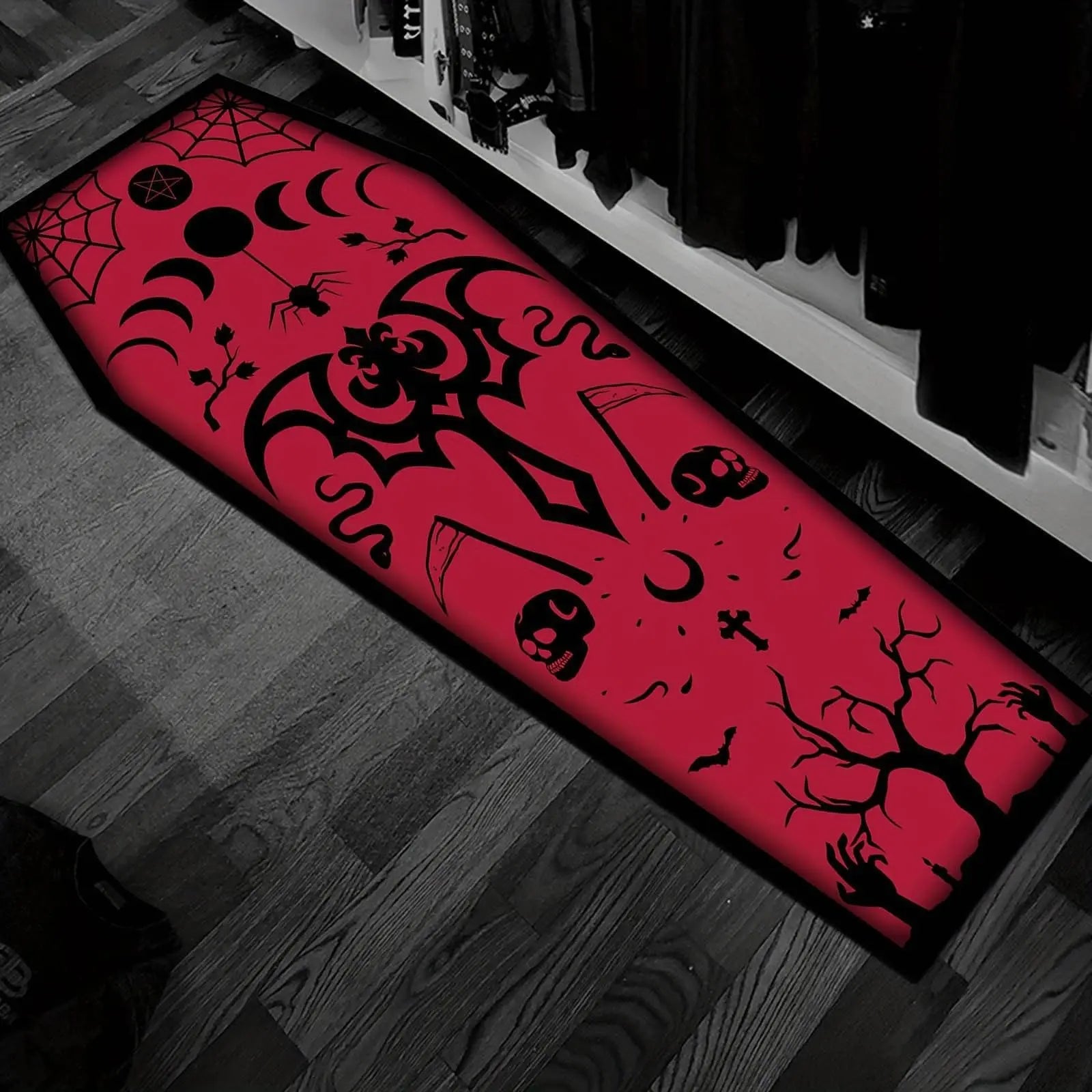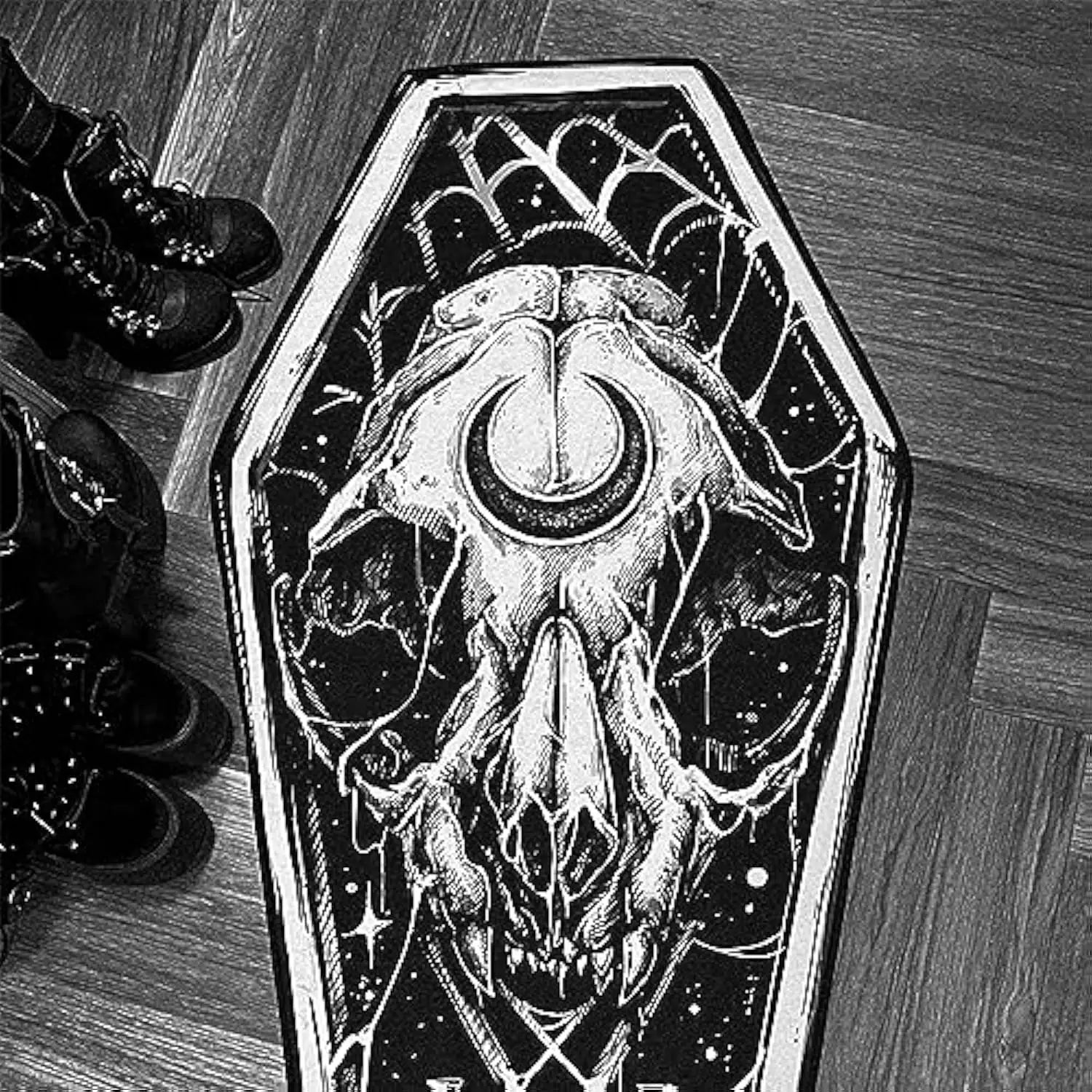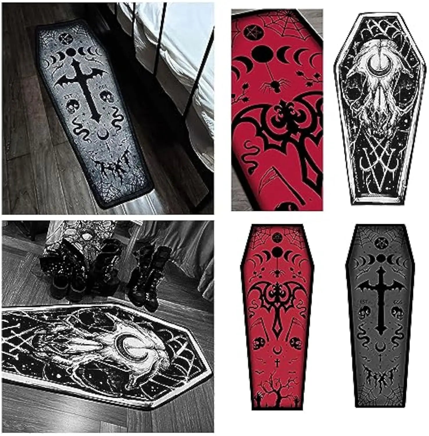 VIKAMA Halloween Bath Mat Coffin Rug for Bedroom Living Room Mysterious Black Carpet Gothic Rug Non-Slip Washable Bathroom Rug