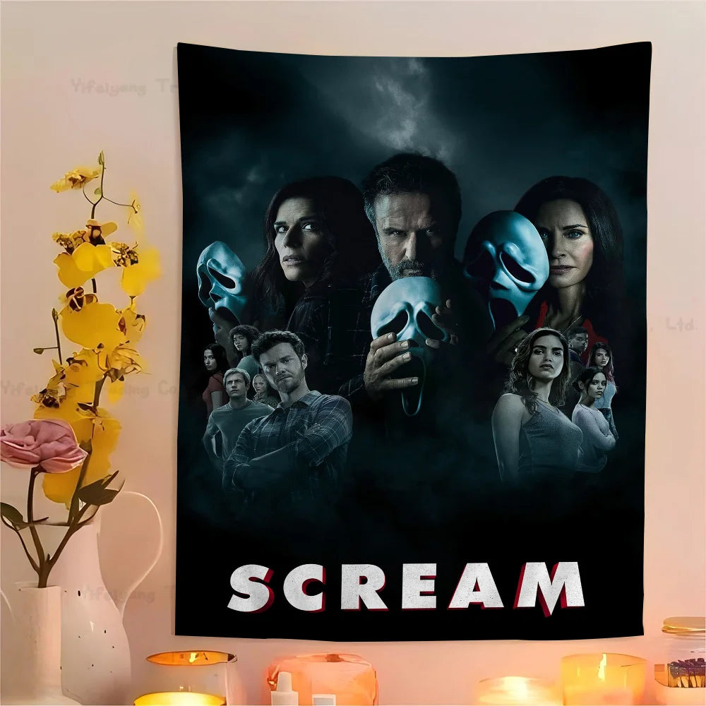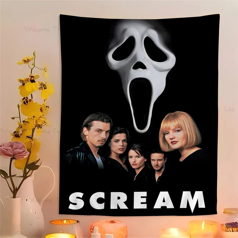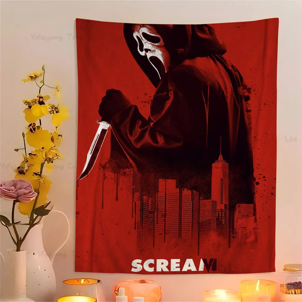 VIKEMA Scream Phantom Tapestry Ghost Mask Blood Blade Scare Secret Haunted House Halloween Party Living Room Room Decoration