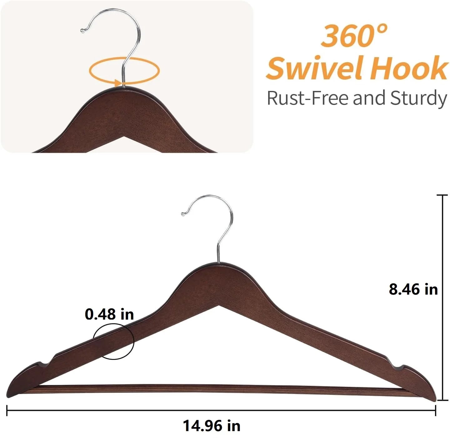 Vintage Walnut Wooden Coat Hangers with Non Slip Pant Bar Premium Lotus Wood with Notches Swivel Hook for Suit Jackets Shirts
