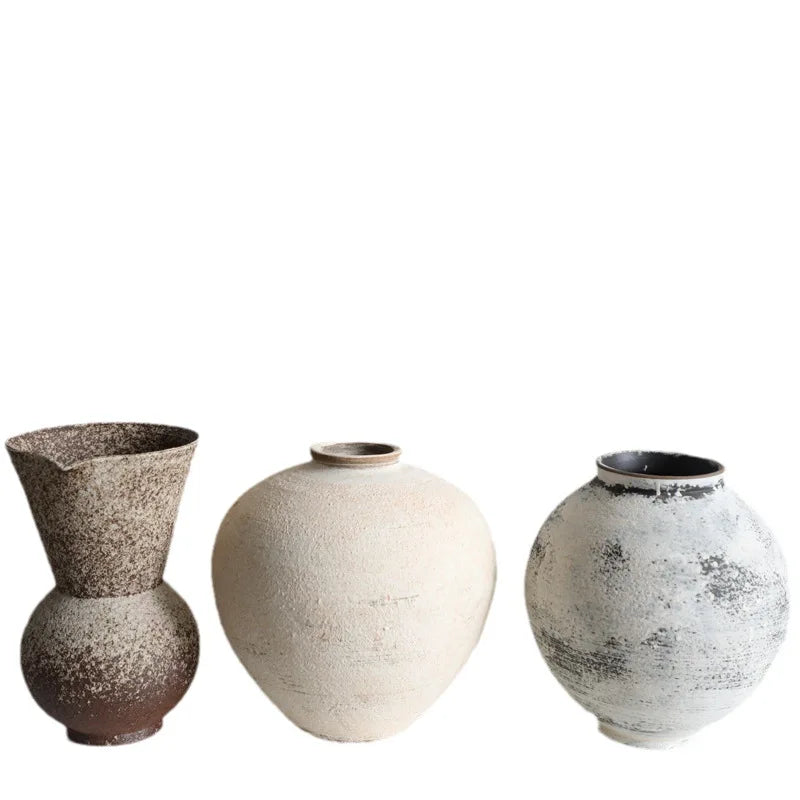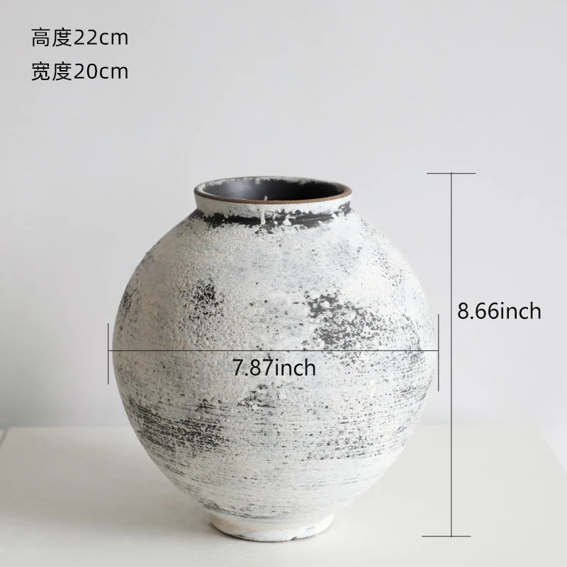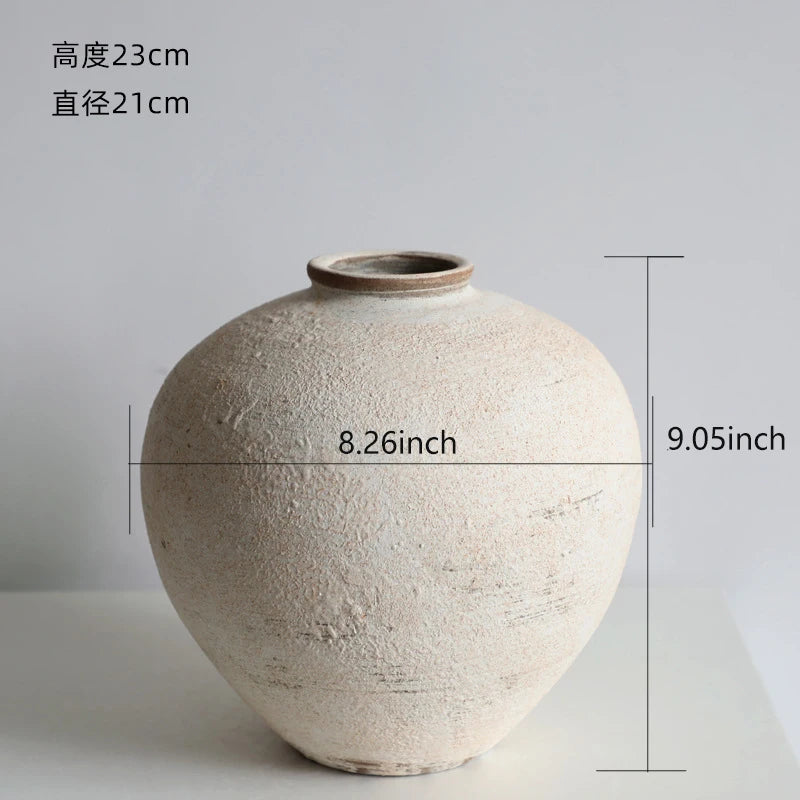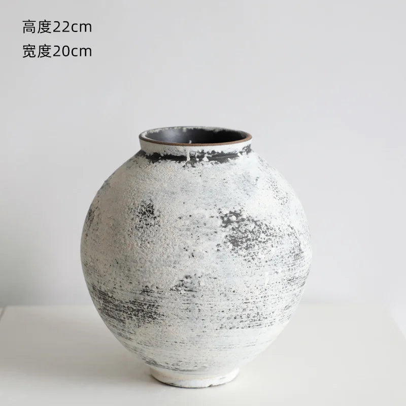 Wabi-sabi style soft furnishings with Jingdezhen handmade pottery ceramic vase vintage rough pot flower arrangement