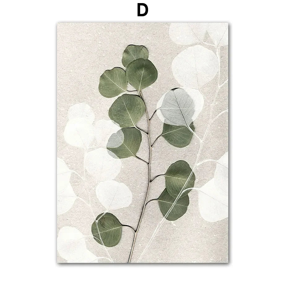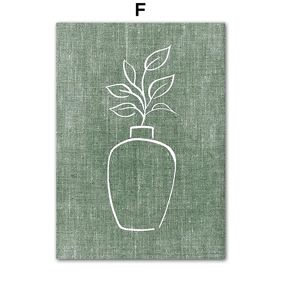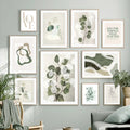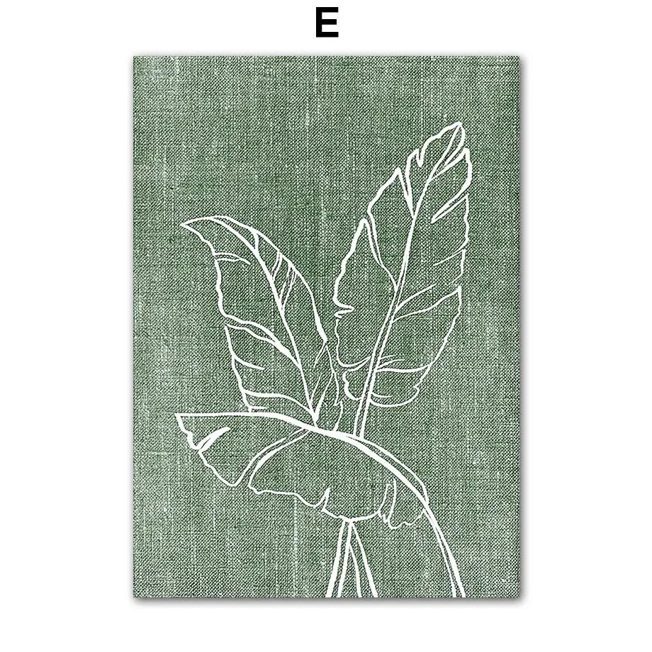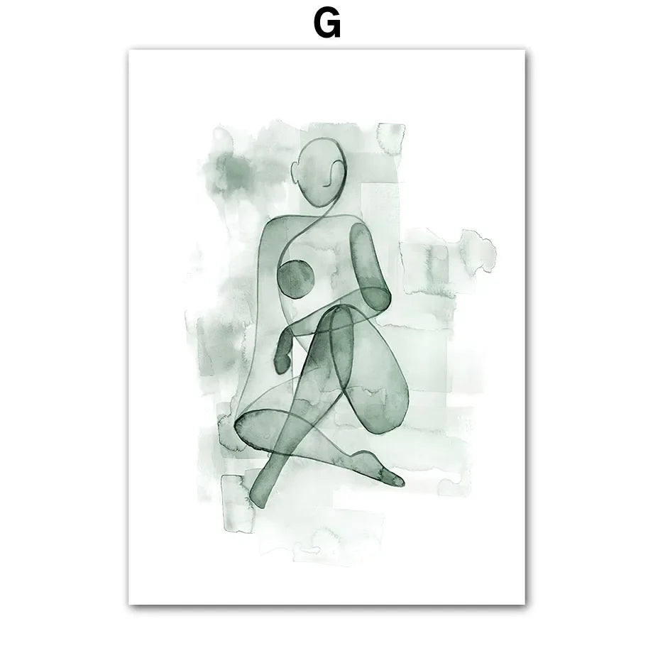 Wall Art Canvas Painting Gray Green Abstract Line Body Eucalyptus Leaves Minimalist Living Room Decor Poster Prints Wall Picture
