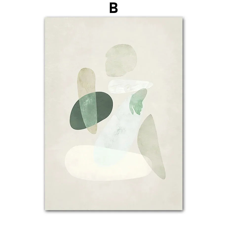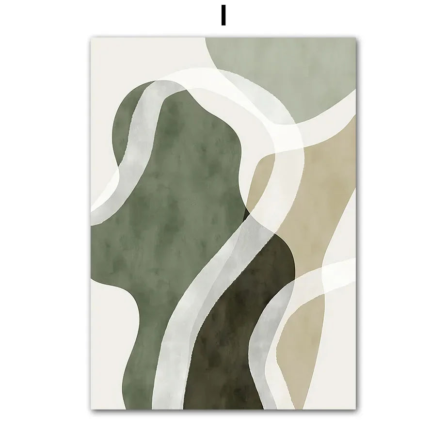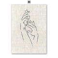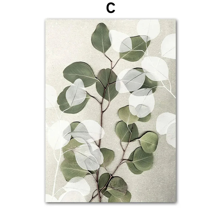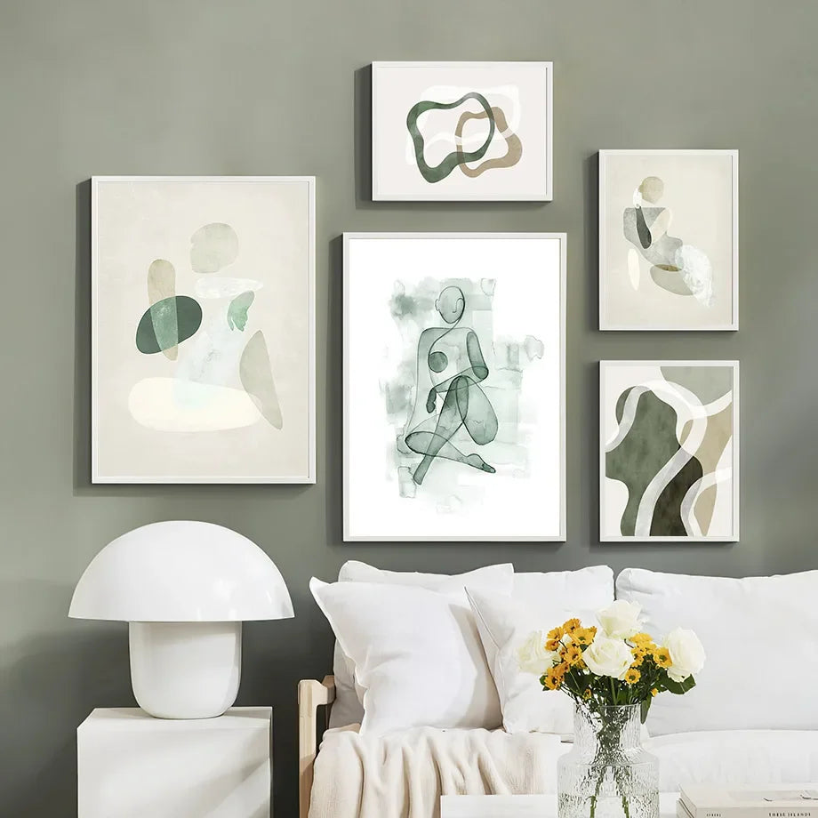 Wall Art Canvas Painting Gray Green Abstract Line Body Eucalyptus Leaves Minimalist Living Room Decor Poster Prints Wall Picture