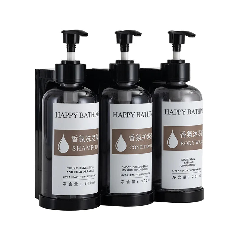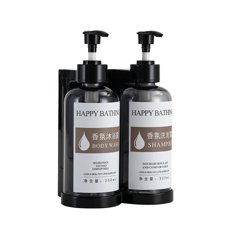 Wall Mounted Manual Soap Dispensers Hotel Shampoo and Shower Gel Separate Bottles Bathroom Shampoo Bottles with Pumps Drill