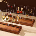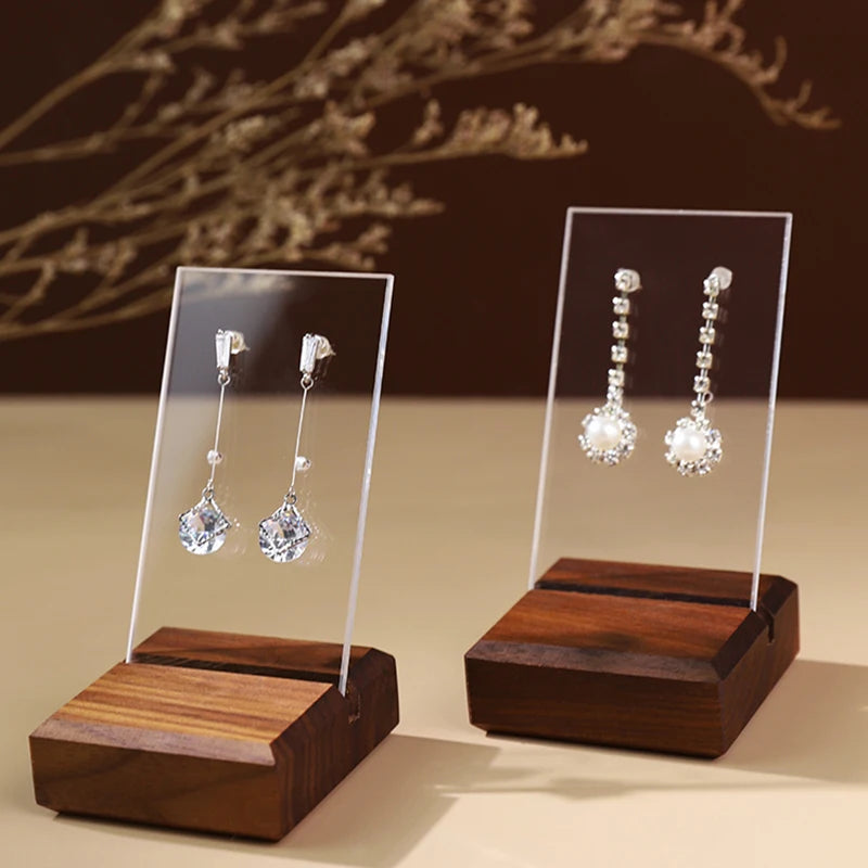 Walnut Wood Earring Display Stand – Jewelry Organizer Holder with Clear Panel Showcase | Naturalbuilthome