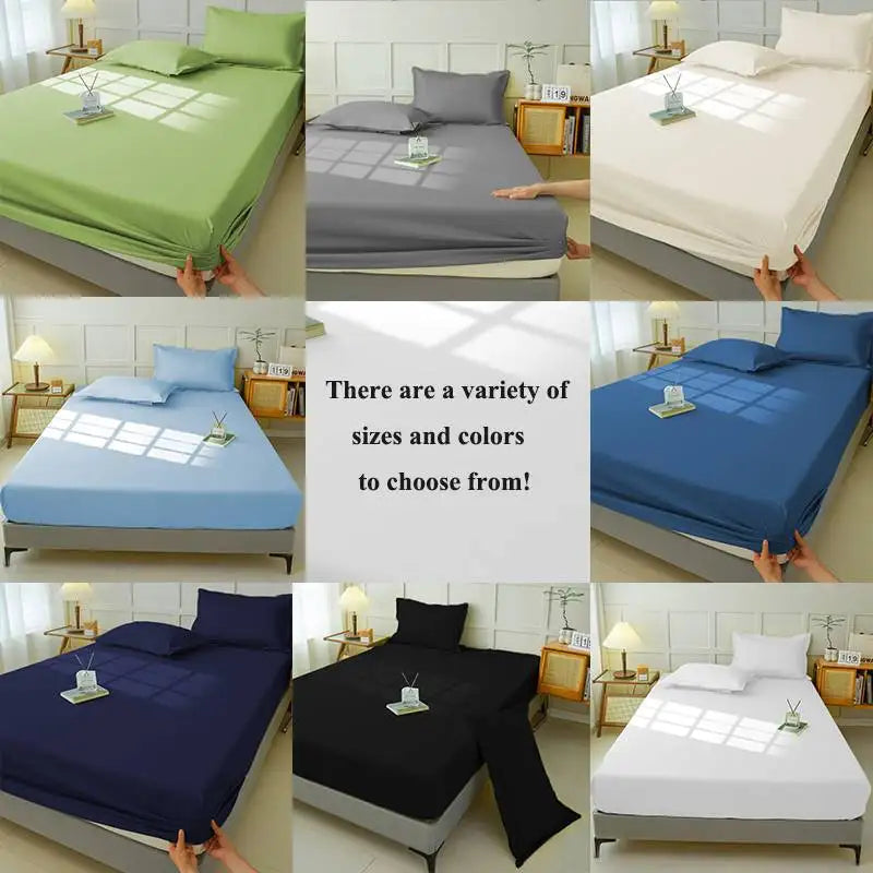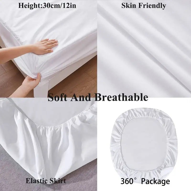 Waterproof Fitted Sheet Bedding Cover Bed Cloth Solid Color Mattress ,Soft Breathable Noiseless Bed Cover Deep Pocket Large size