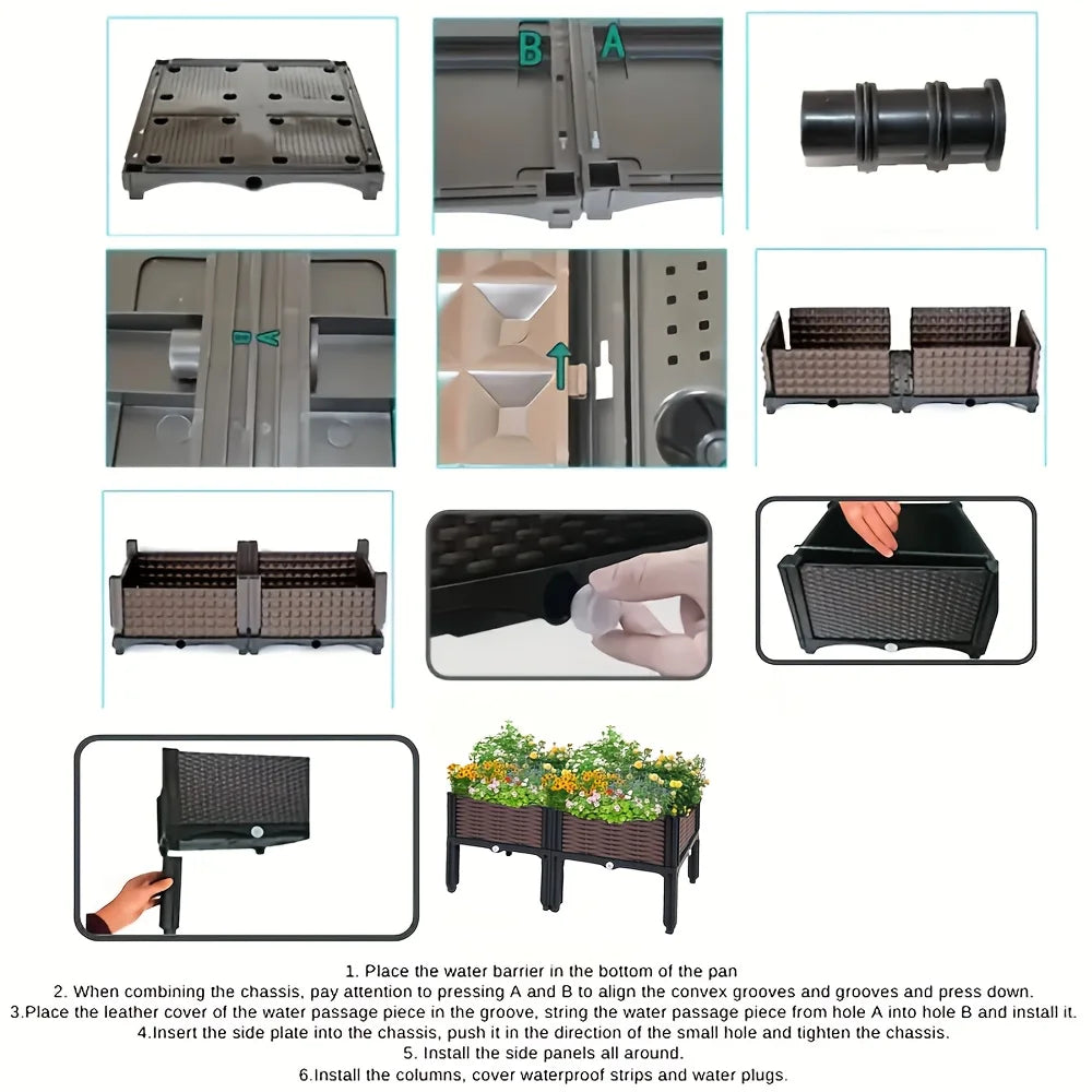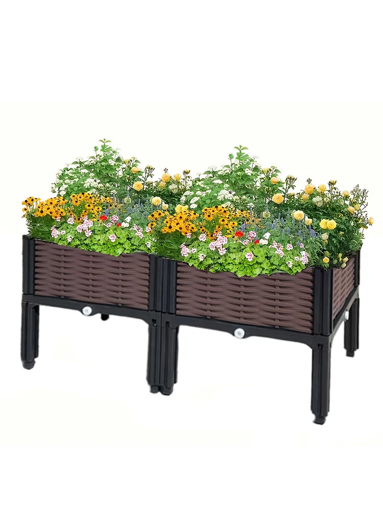 Weaving Elevated Garden Bed - Durable Plastic Elevated Flower Pot with Drainage Holes, Suitable for Terrace, Deck, Rectangular