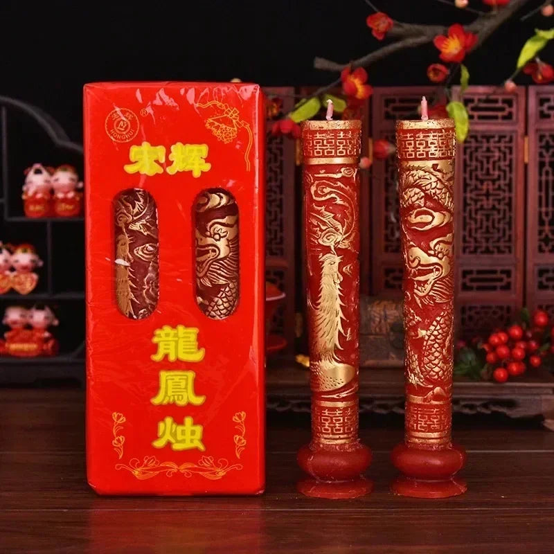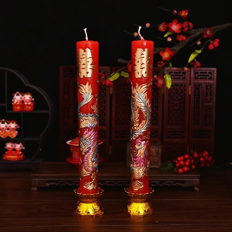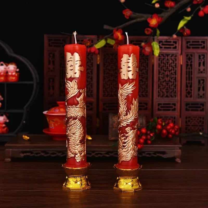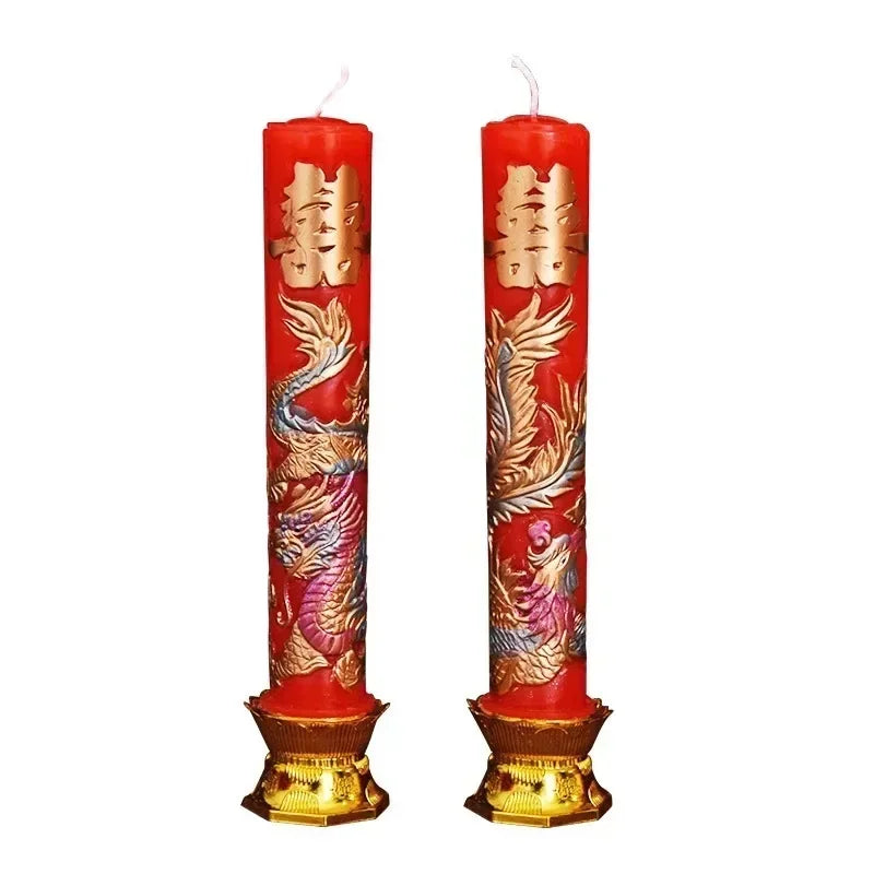 Wedding Decoration Candles Chinese Style Dragon and Phoenix Bridal Chamber Wedding Ceremony Decoration Pair Relief Candles