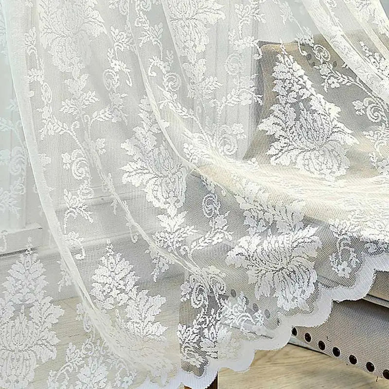 White Lace Tulle Curtains for Bedroom Floral Window Treatments European-Style Sheer Voile For Livingroom Kitchen Drape Girl Room