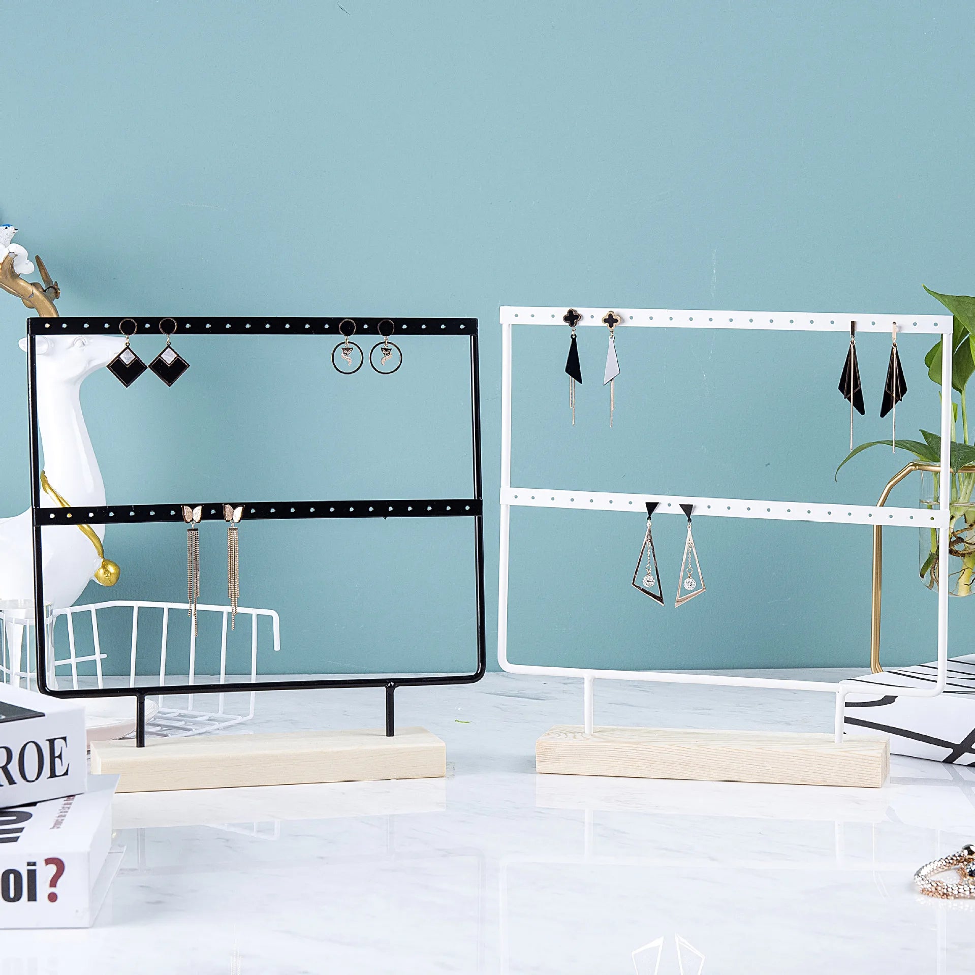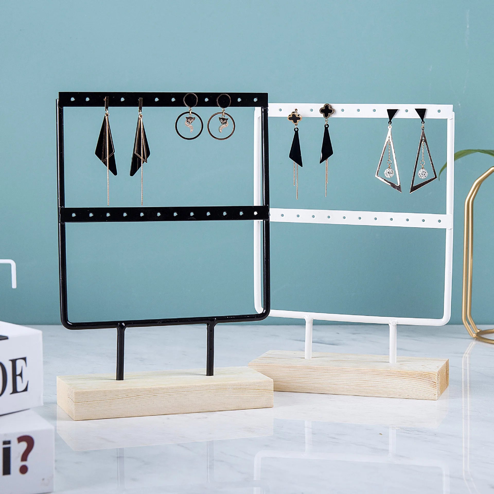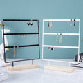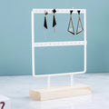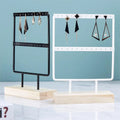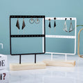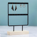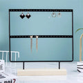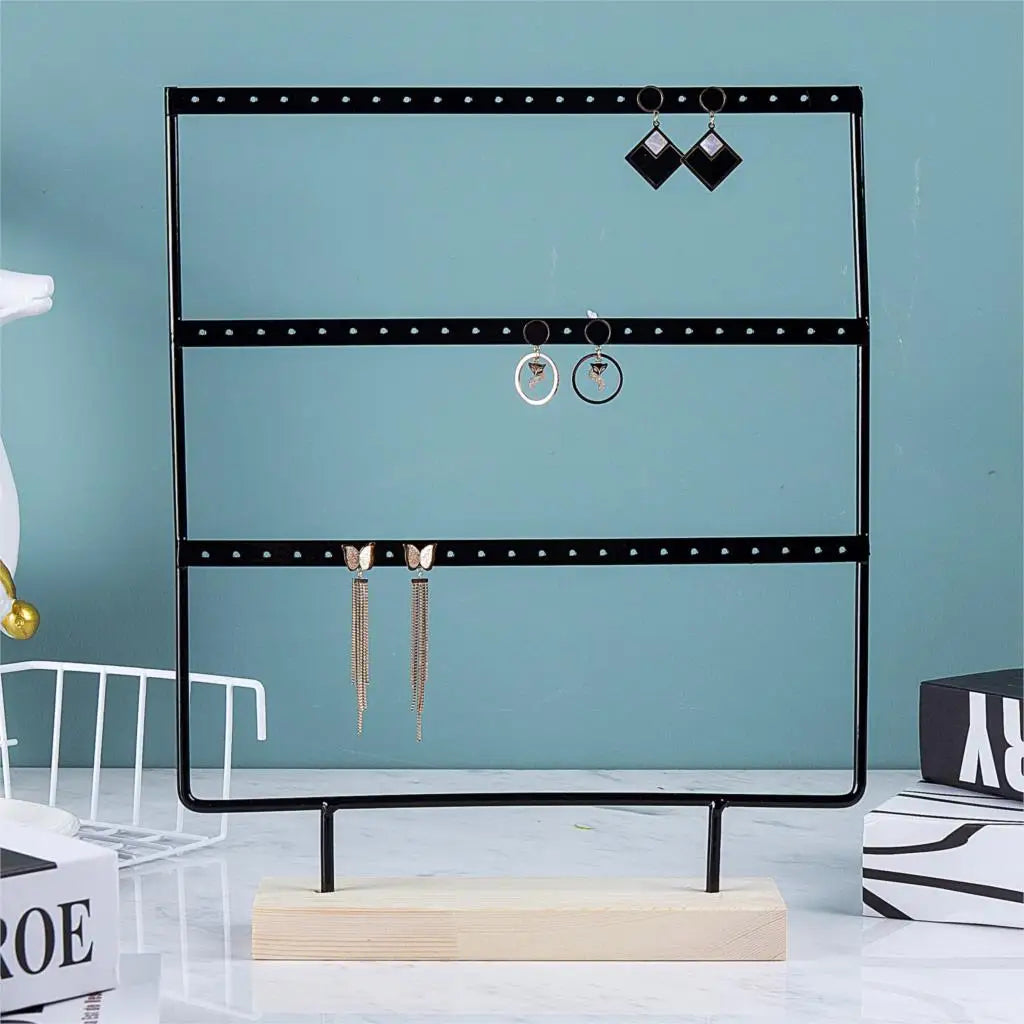 Bring elegance and order to your jewelry with this metal and wood display stand. Perfect for showcasing earrings, necklaces, and pendants, this stand combines a sturdy metal frame with a natural wooden base for a chic and modern look.