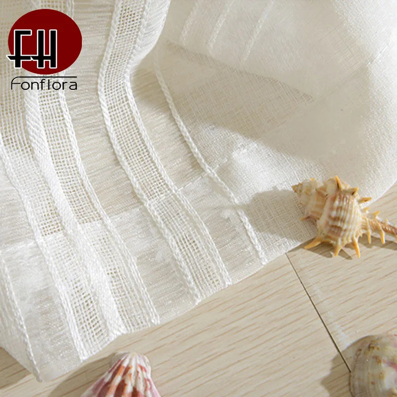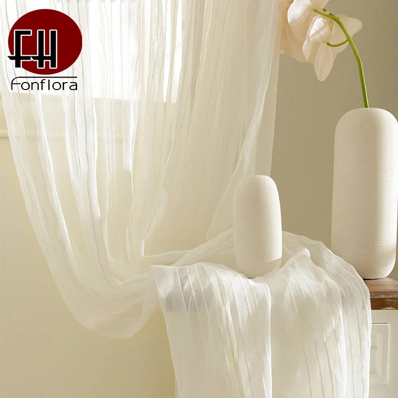 Window Curtains, Tulle, Sheer, Cortinas, Curtains for living room, Partition, Home Interior, White, Striped, Drapes for Bedroom