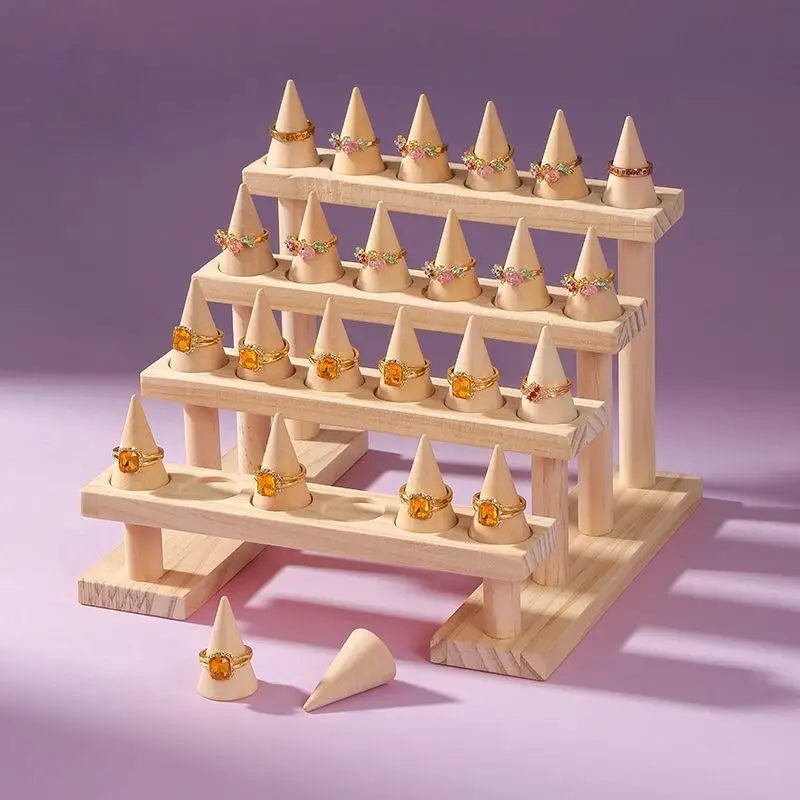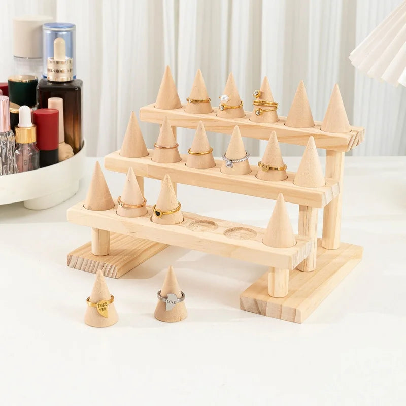 Wooden Ring Display Stand – Cone Holder Organizer for Jewelry Showcase & Storage | Naturalbuilthome