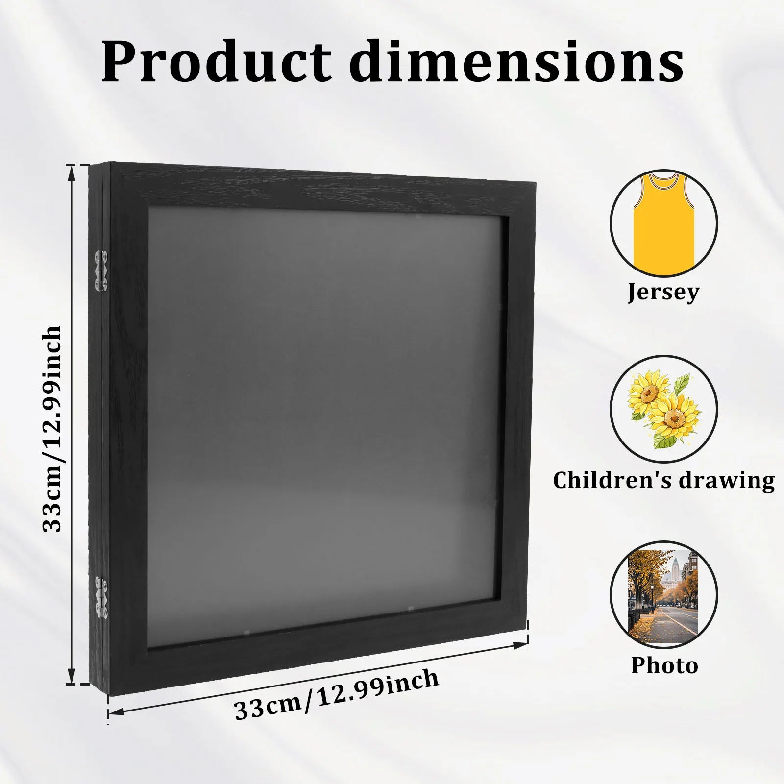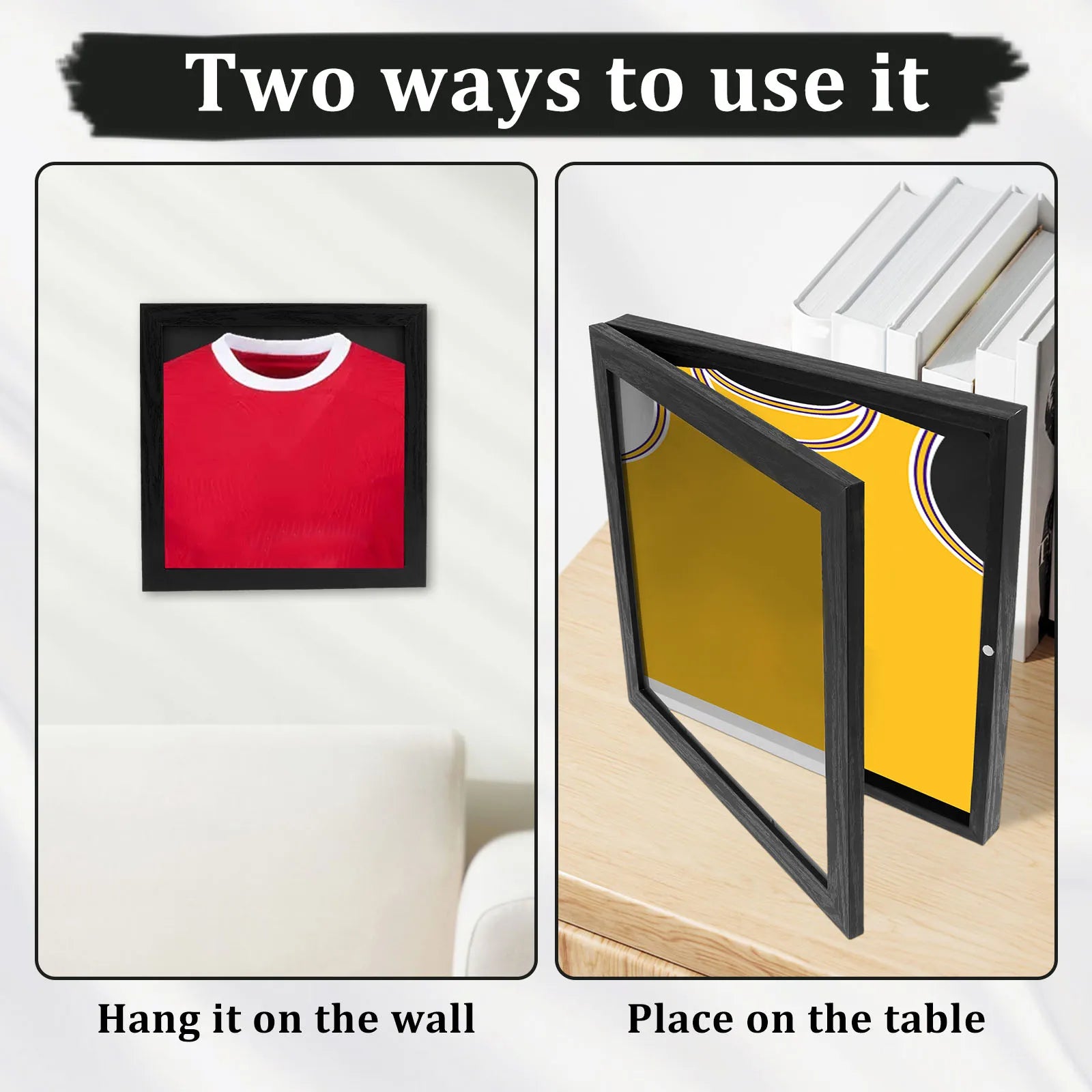 Wood T Shirt Display Frame Wall Mounted Jerseys Storage Box 13x13inch Multifunctional Shadow Box Frame for Jerseys Memorabilia