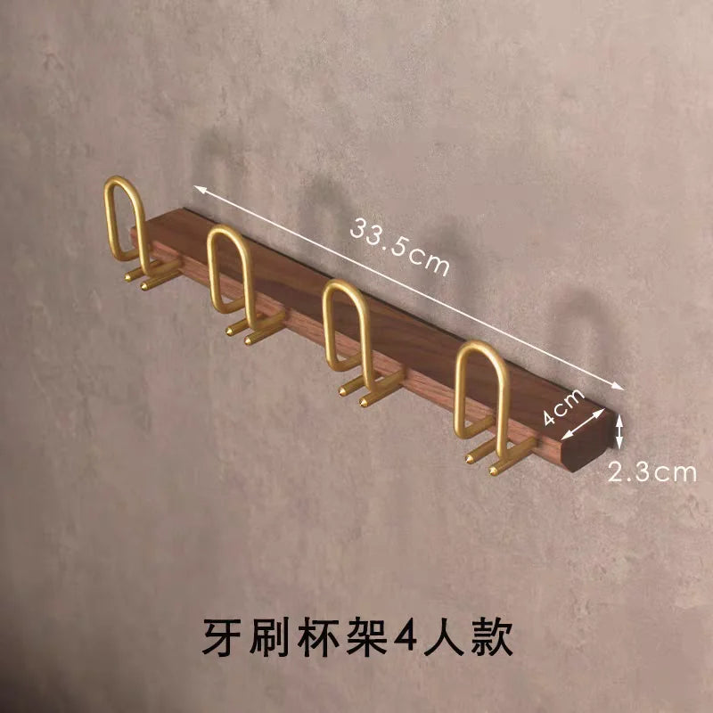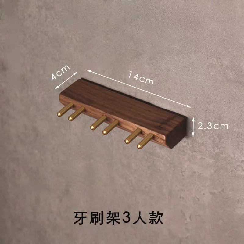 Wood Toothbrush Holder Storage Rack Household Toothbrush Organizer Sticky Wall-mounted Toothpaste Bathroom Accessories Shelf