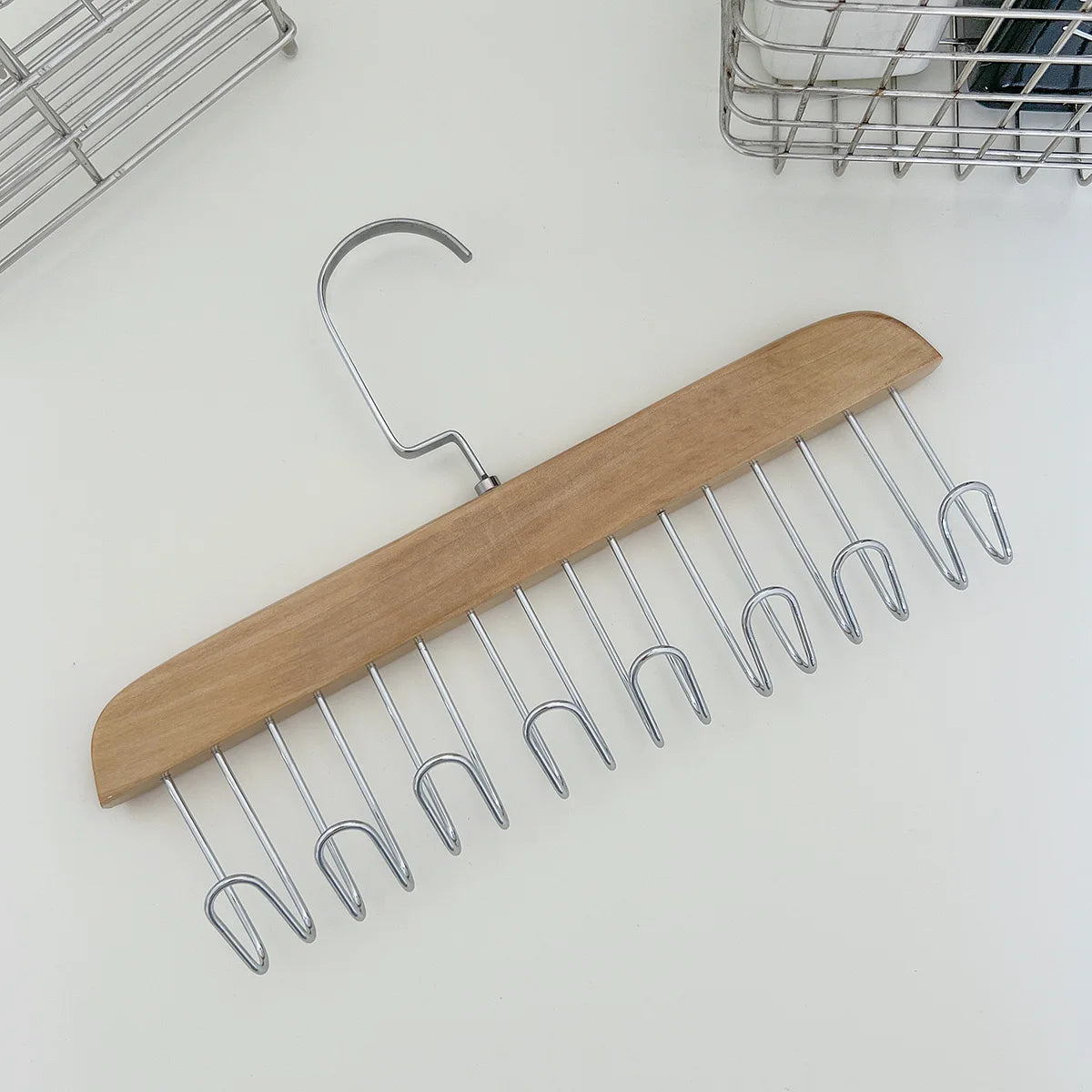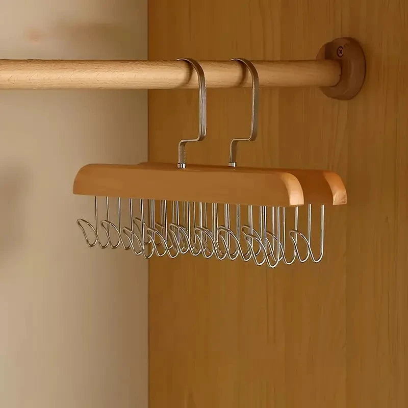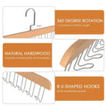 Wooden Clothes Hanger With 8 Hooks Bra Space Saving Hangers Heavy Duty Wooden Hanger With 360°Rotating Hooks Closet Wardrobe