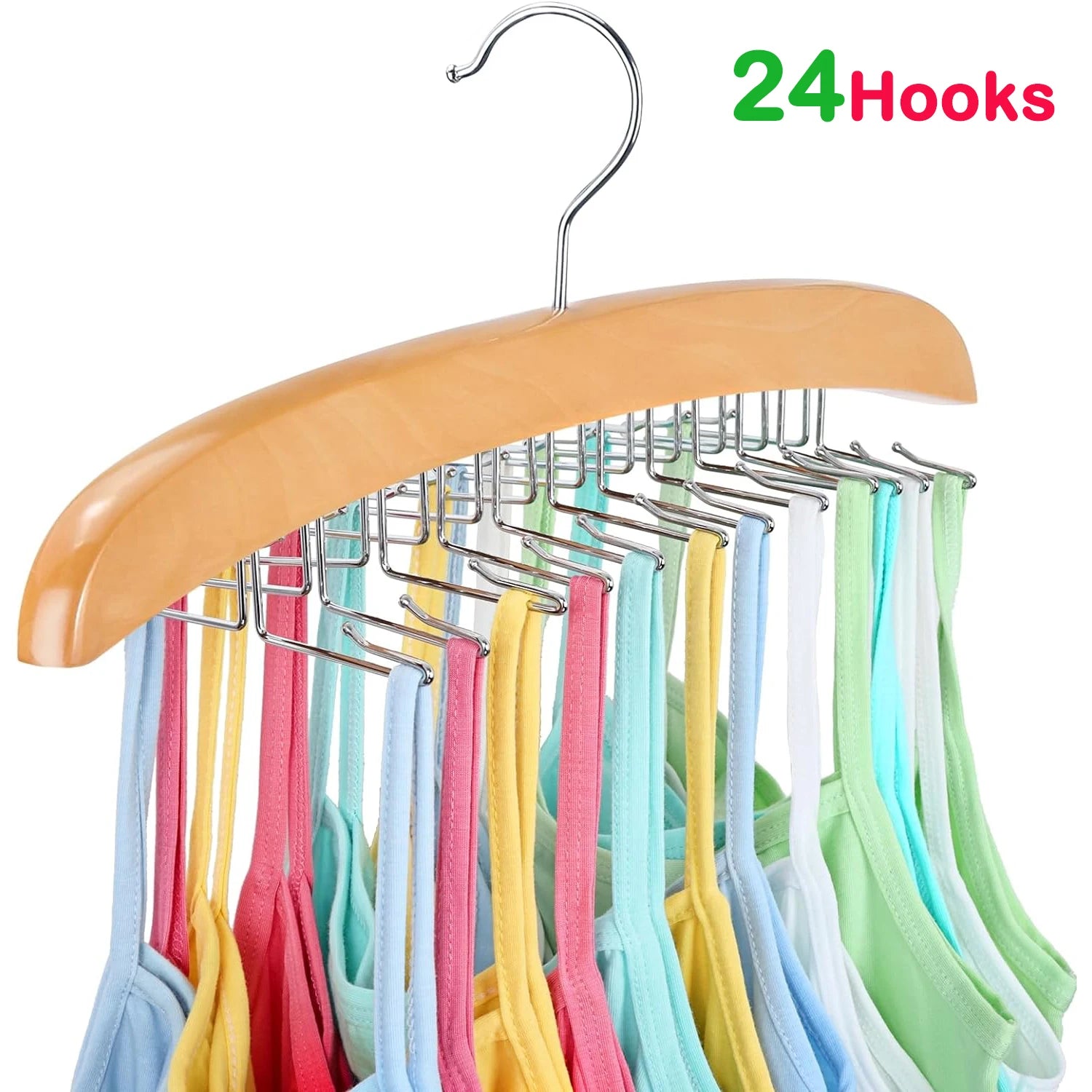 Wooden Underwear Hanger 360° Rotation Space Saving Camisole Storage Rack With 24 Hooks for Dress Tank Top Tie Closet Organizer
